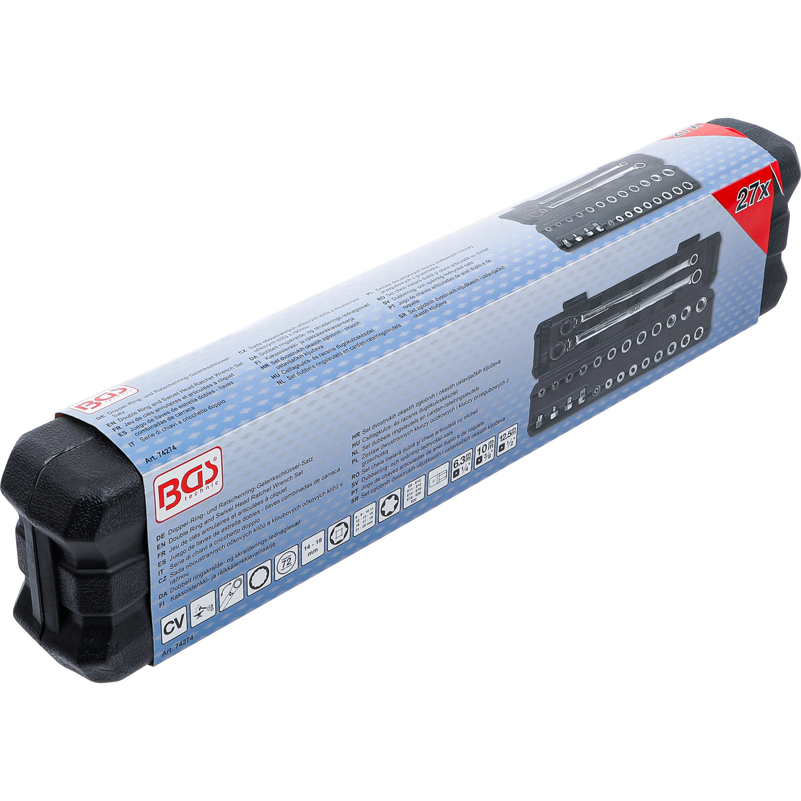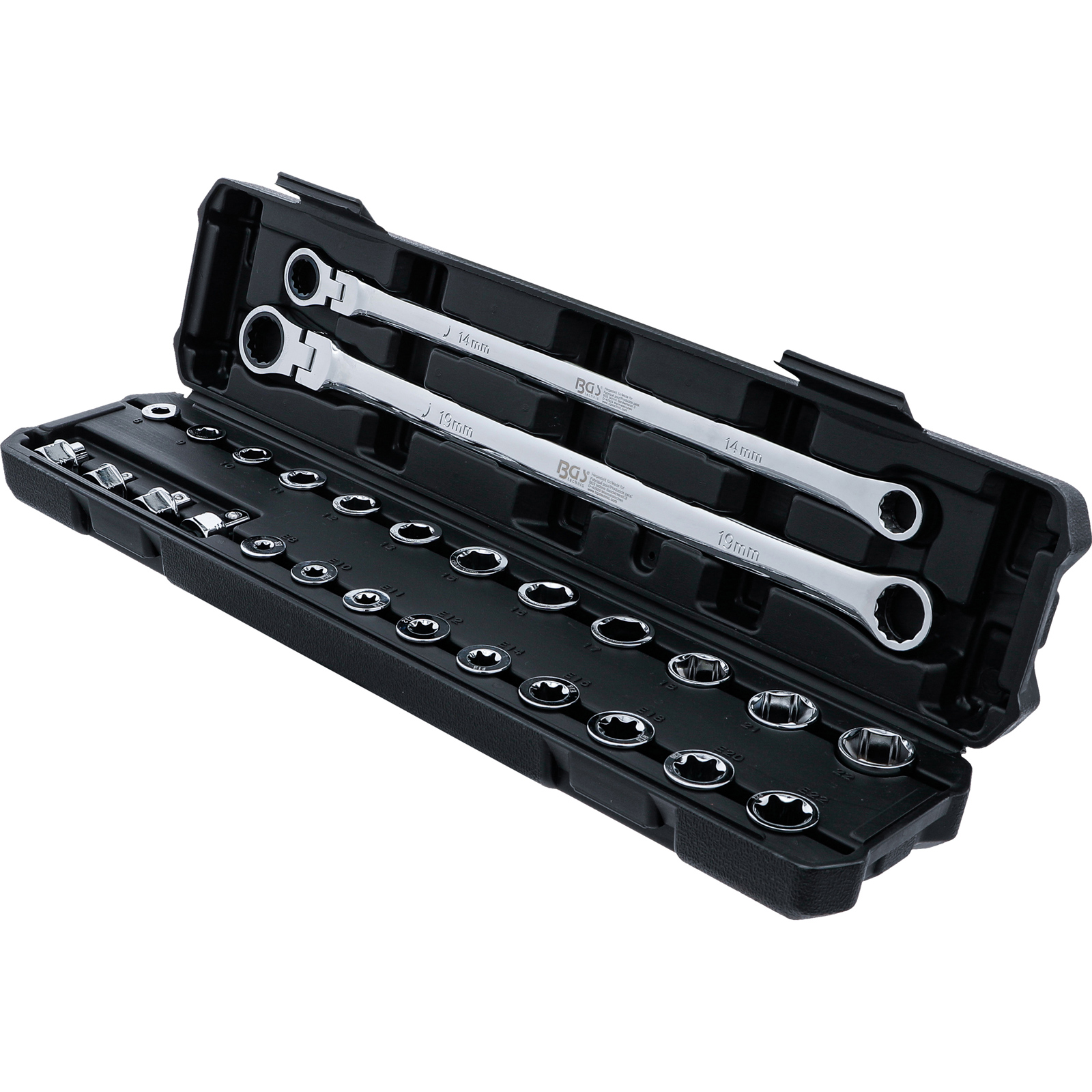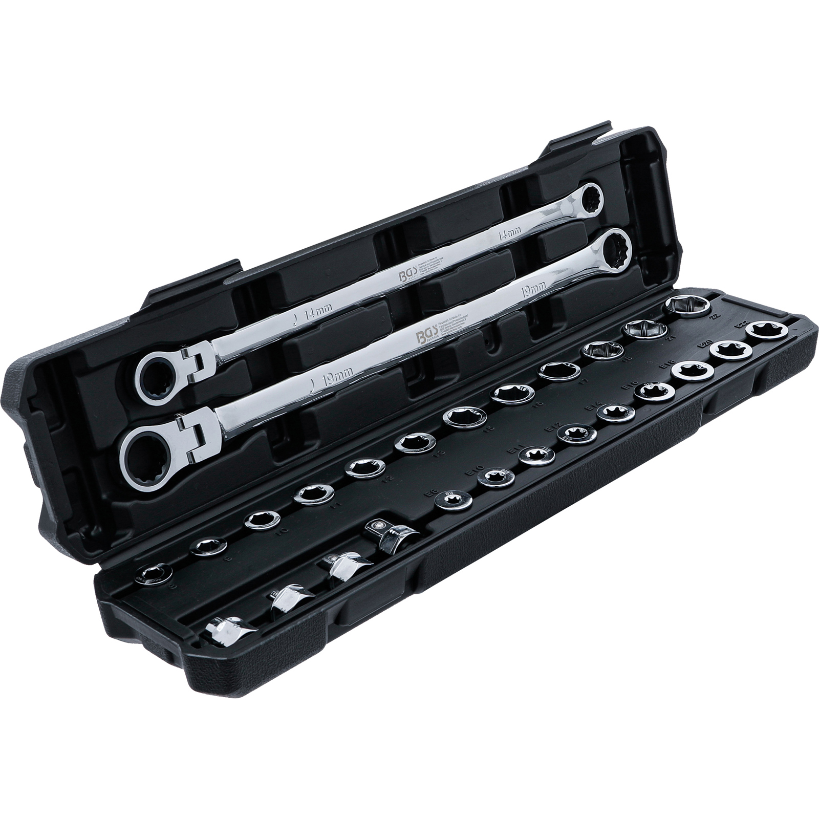"BGS Doppel-Ring- und Ratschenring-Gelenkschlüssel-Satz | extra lang | 27-tlg. - 74274"
