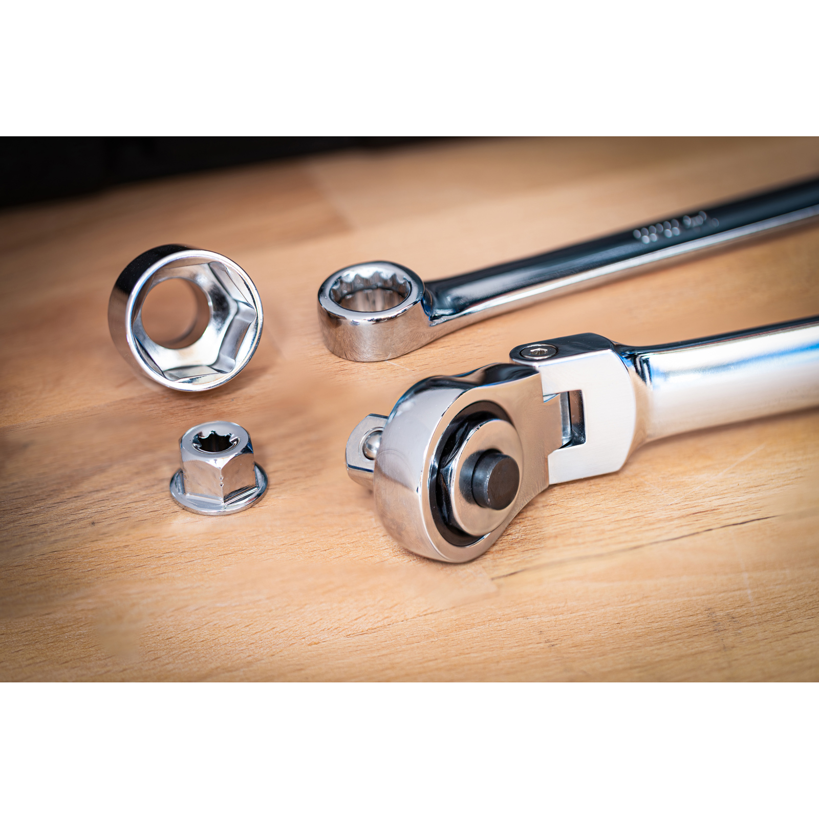 - Zwölfkant Abtriebsprofil der Ratschenring-Gelenkschlüssel sorgt für optimale Drehmomentübertragung am Schraubenkopf