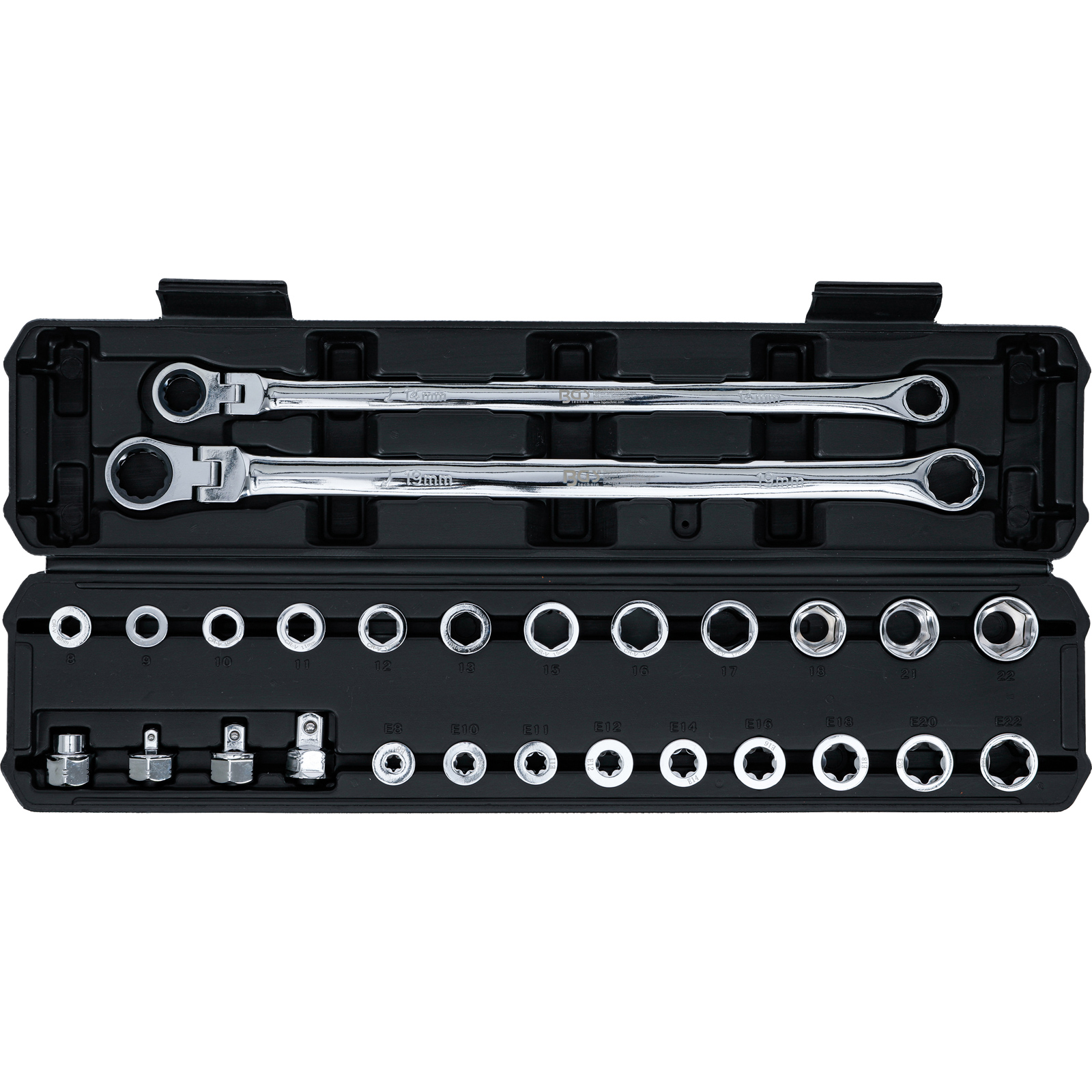 - 1x BGS Adapter mit Außenvierkant 10 mm (3/8") für Ringschlüssel SW 19 mm