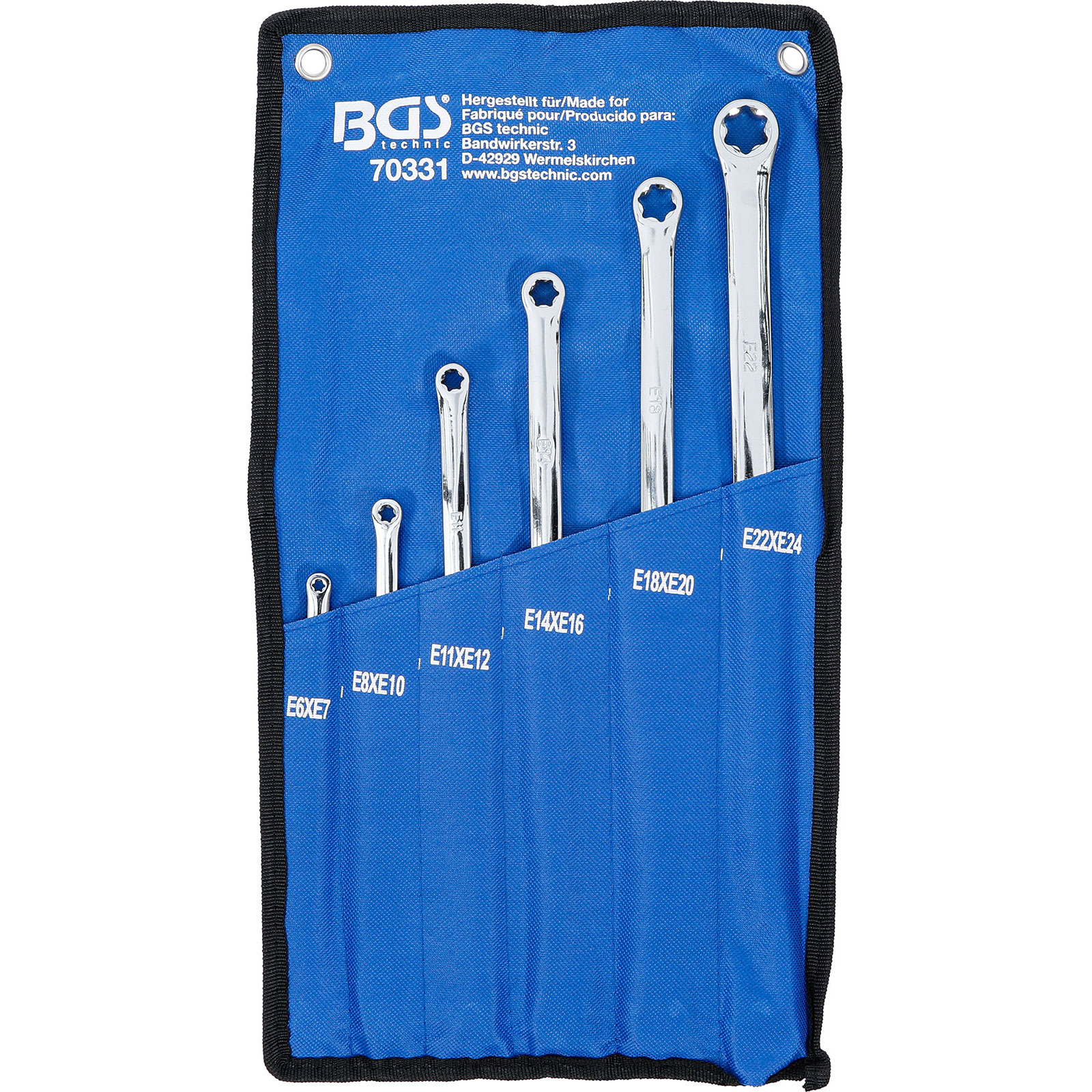 "BGS Doppel-Ringschlüssel-Satz mit E-Profil-Ringköpfen extra lang SW E6 x E7 - E22 x E24 6tlg. - 70331"