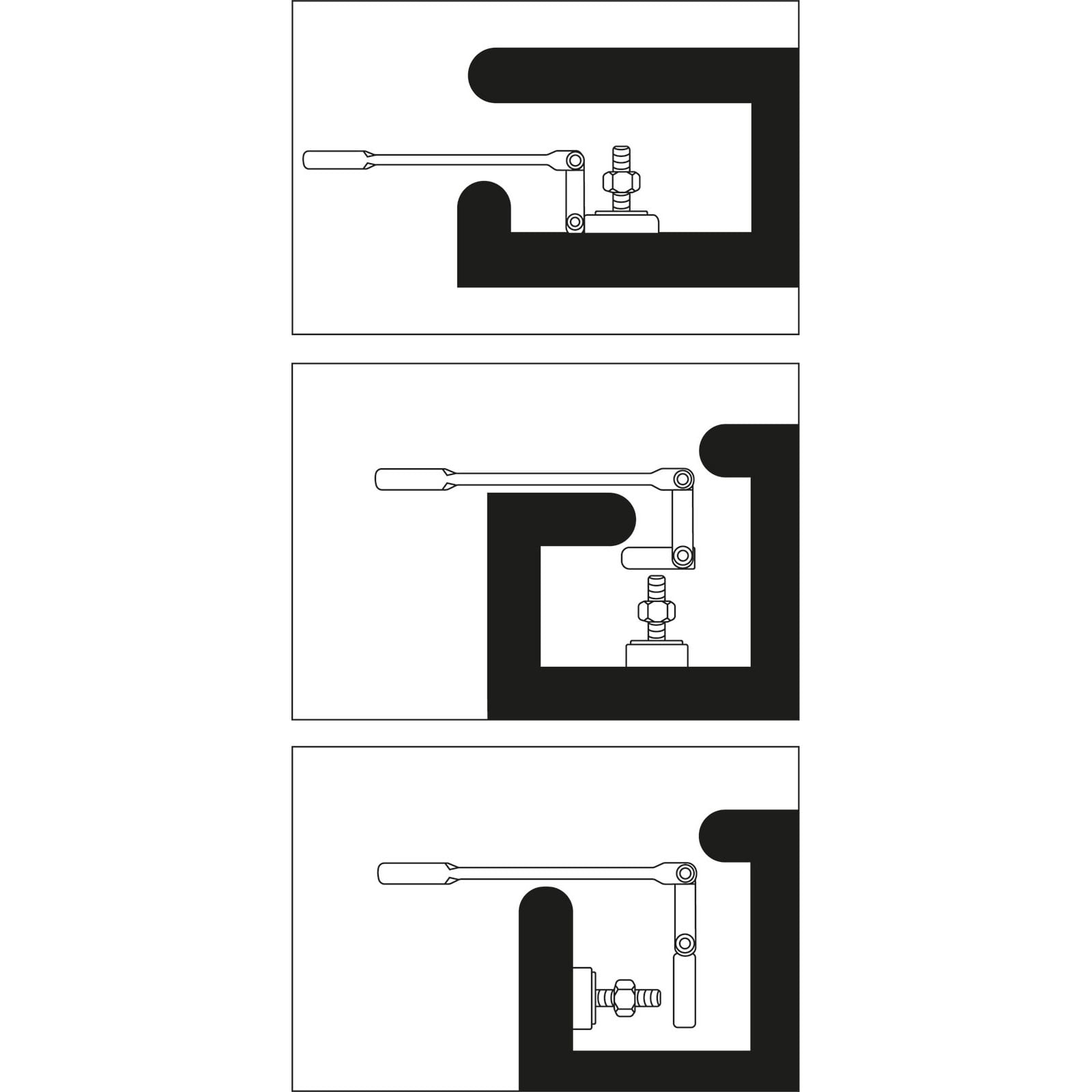 - für schwer zugängliche Arbeitsbereiche auf engstem Raum und tief liegende Schraubverbindungen