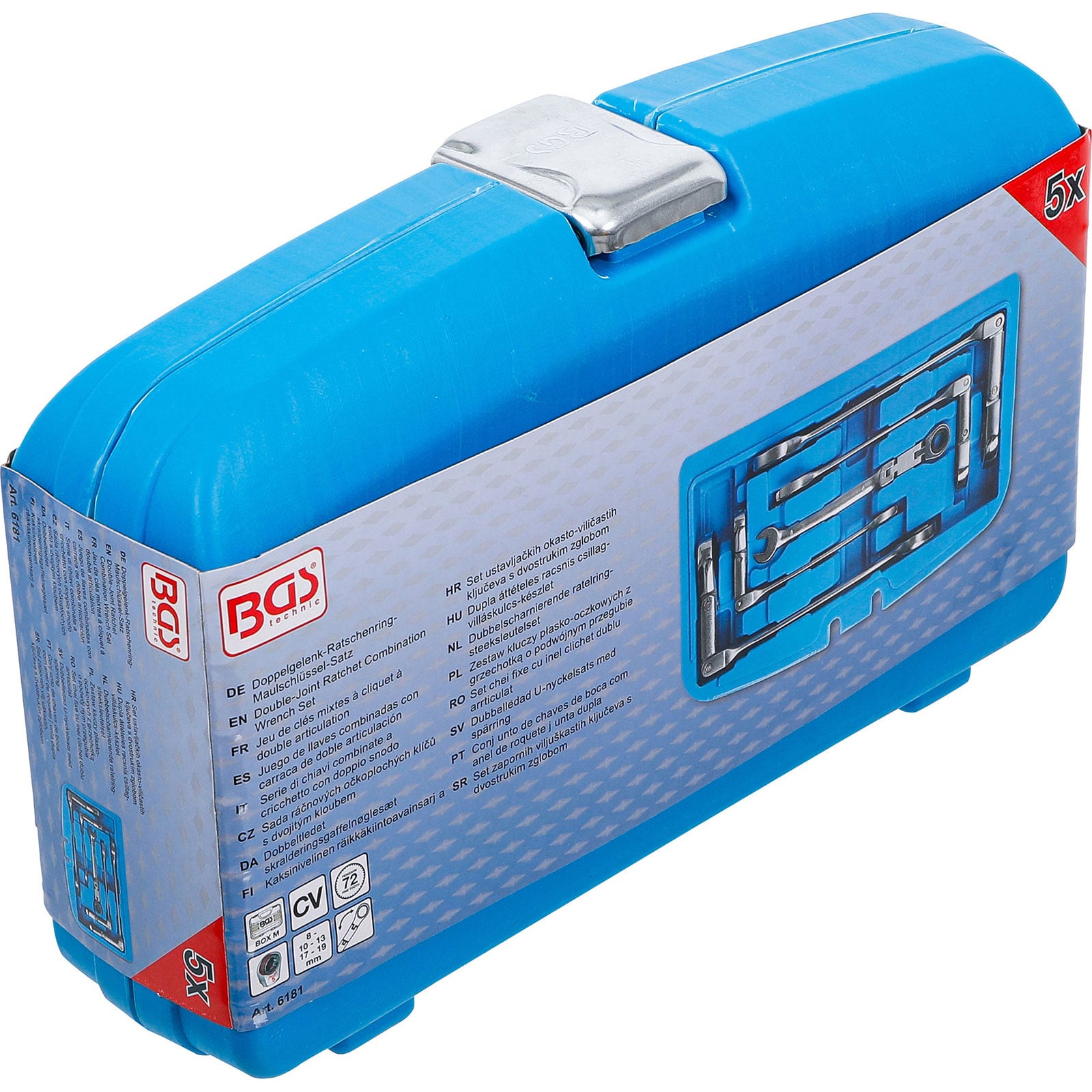 "BGS Doppelgelenk-Ratschenring-Maulschlüssel-Satz abwinkelbar SW 8-19 mm 5tlg. - 6181"