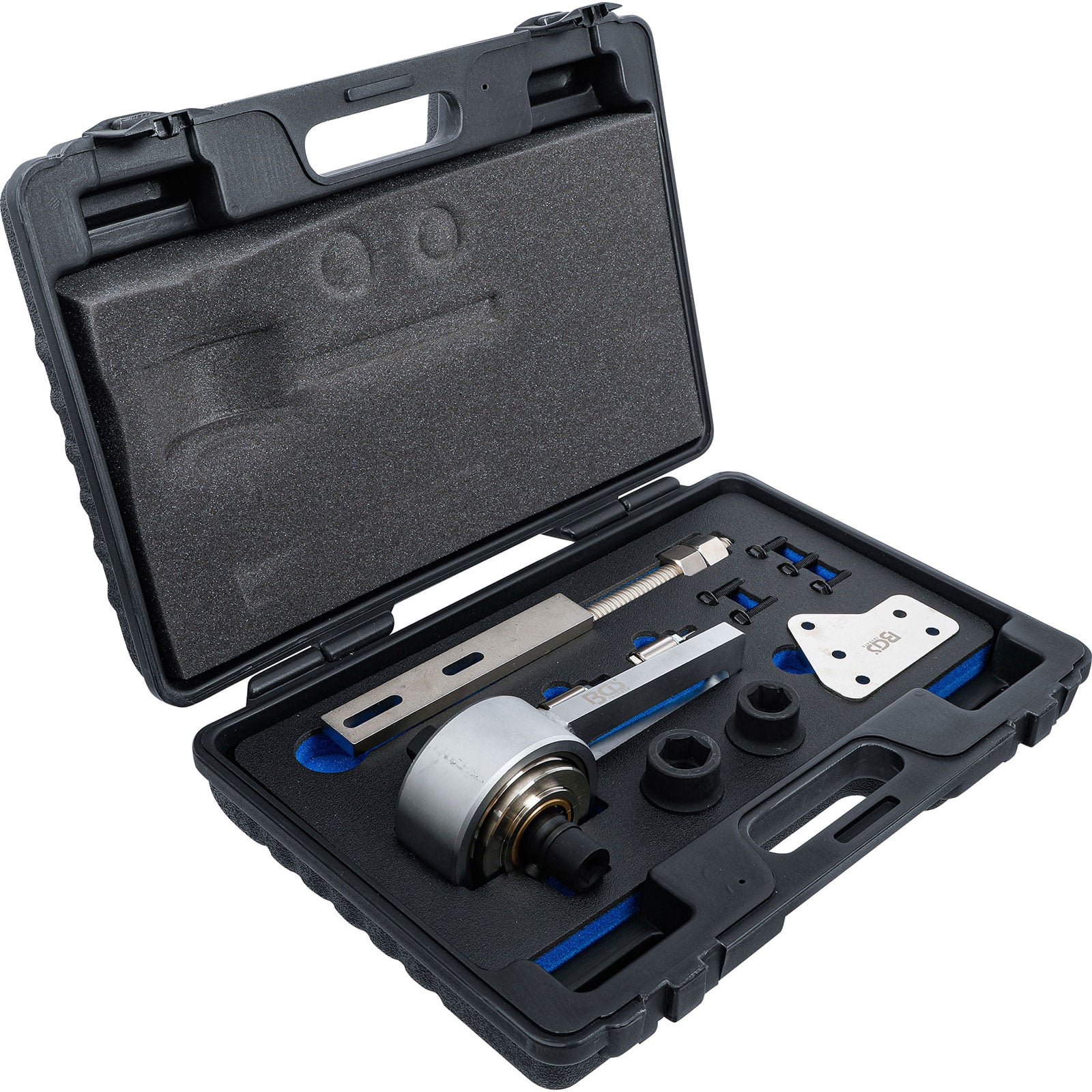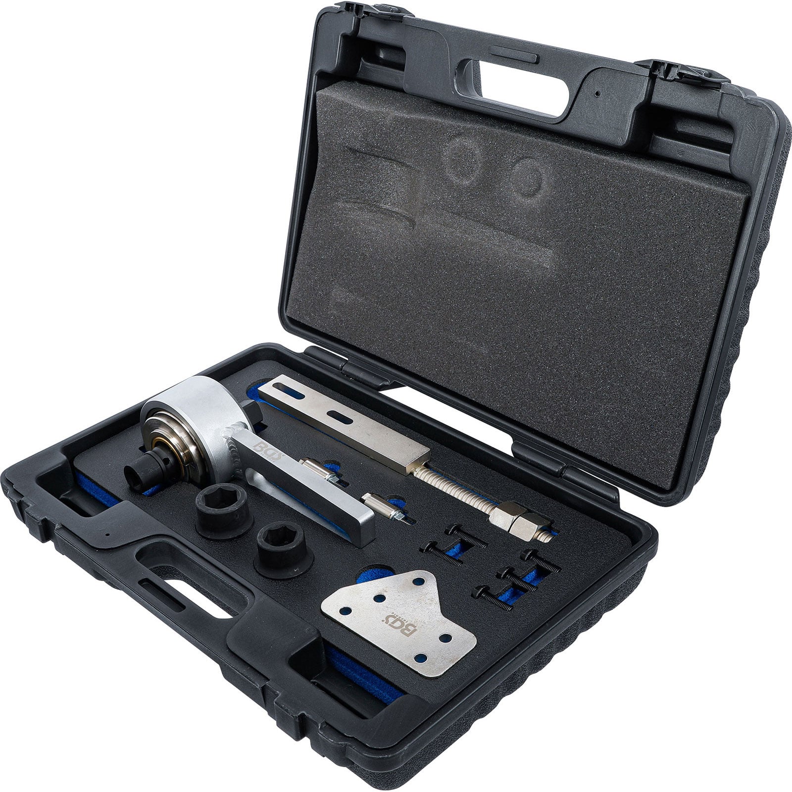 - Drehmomentwandler in Verbindung mit dem Halter und der Halteplatte geeignet zum Lösen und Festziehen der Kurbelwellen-Riemenscheibenschraube nach Herstellervorgaben