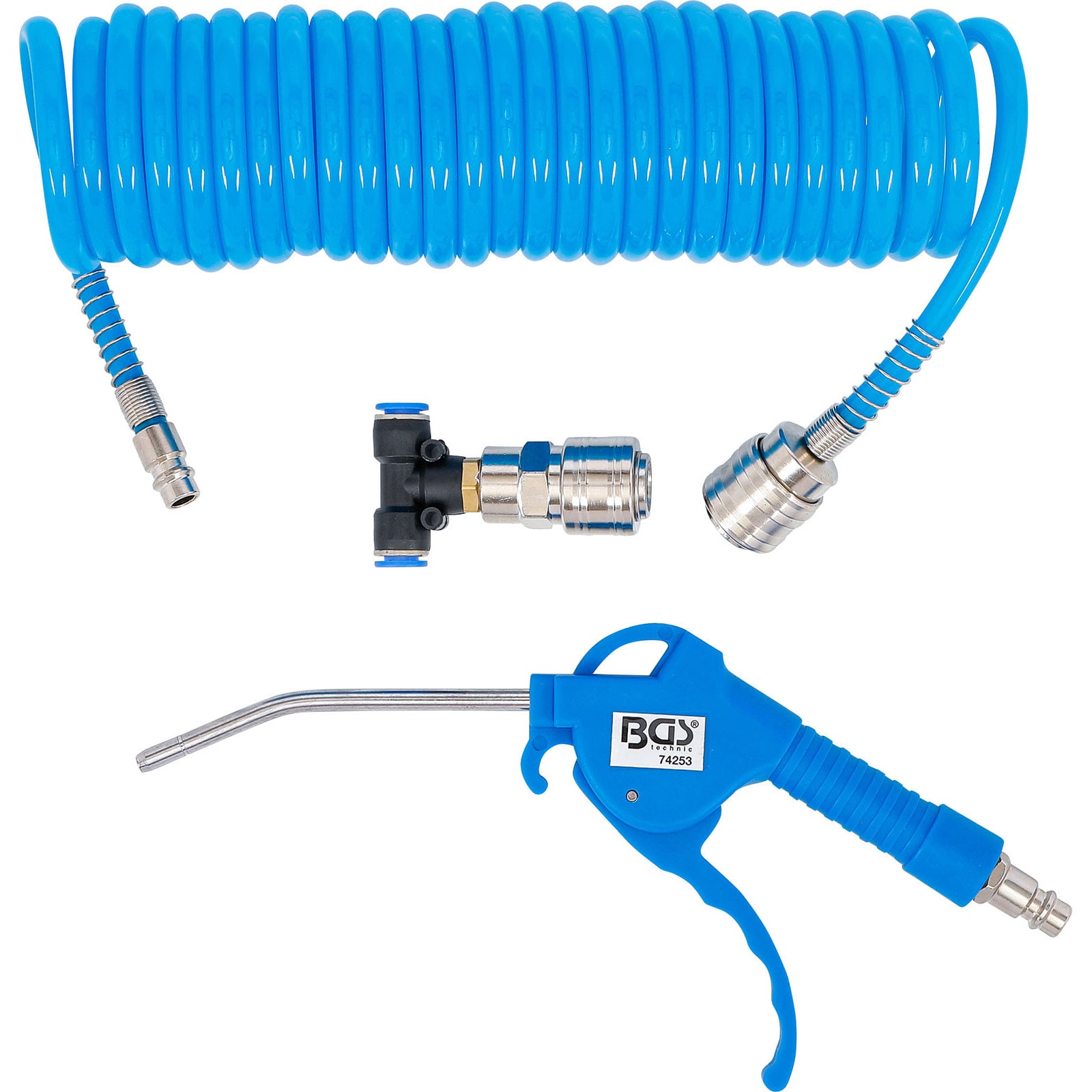 "BGS Druckluft-Ausblaspistole mit Druckluft-Spiralschlauch und T-Verbinder - 74253"