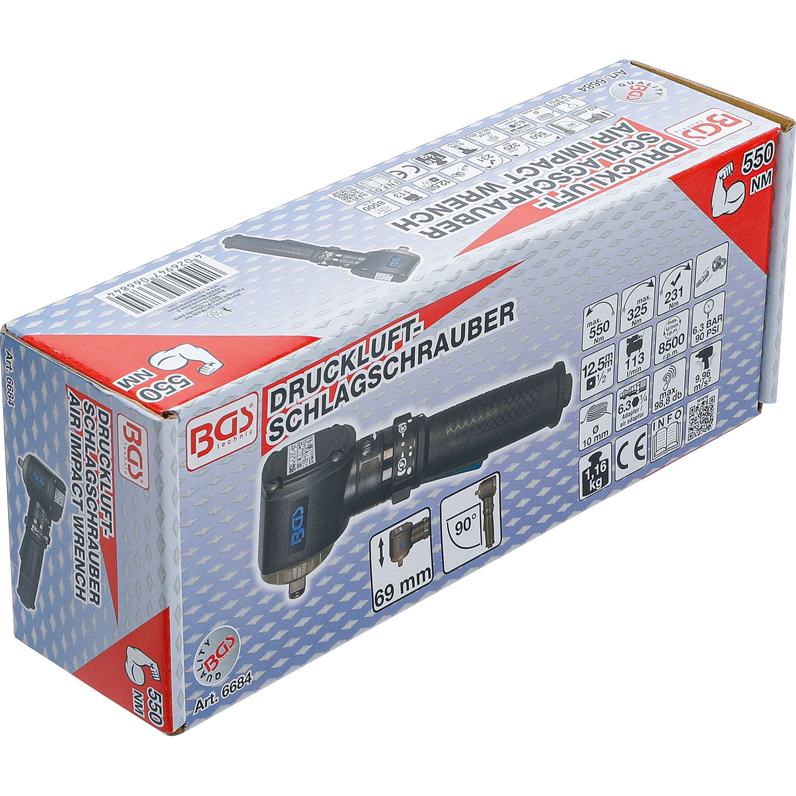 "BGS Druckluft-Schlagschrauber abgewinkelt 12,5 mm (1/2") 550 Nm - 6684"