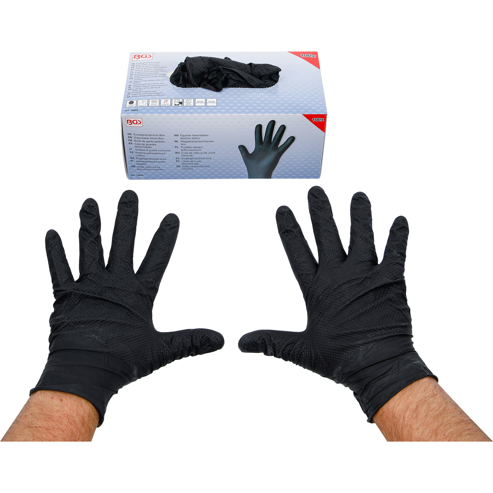 - 1x BGS Einweghandschuh-Box | Nitril | mit extra Griffigkeit | Gr. L | 100 St.