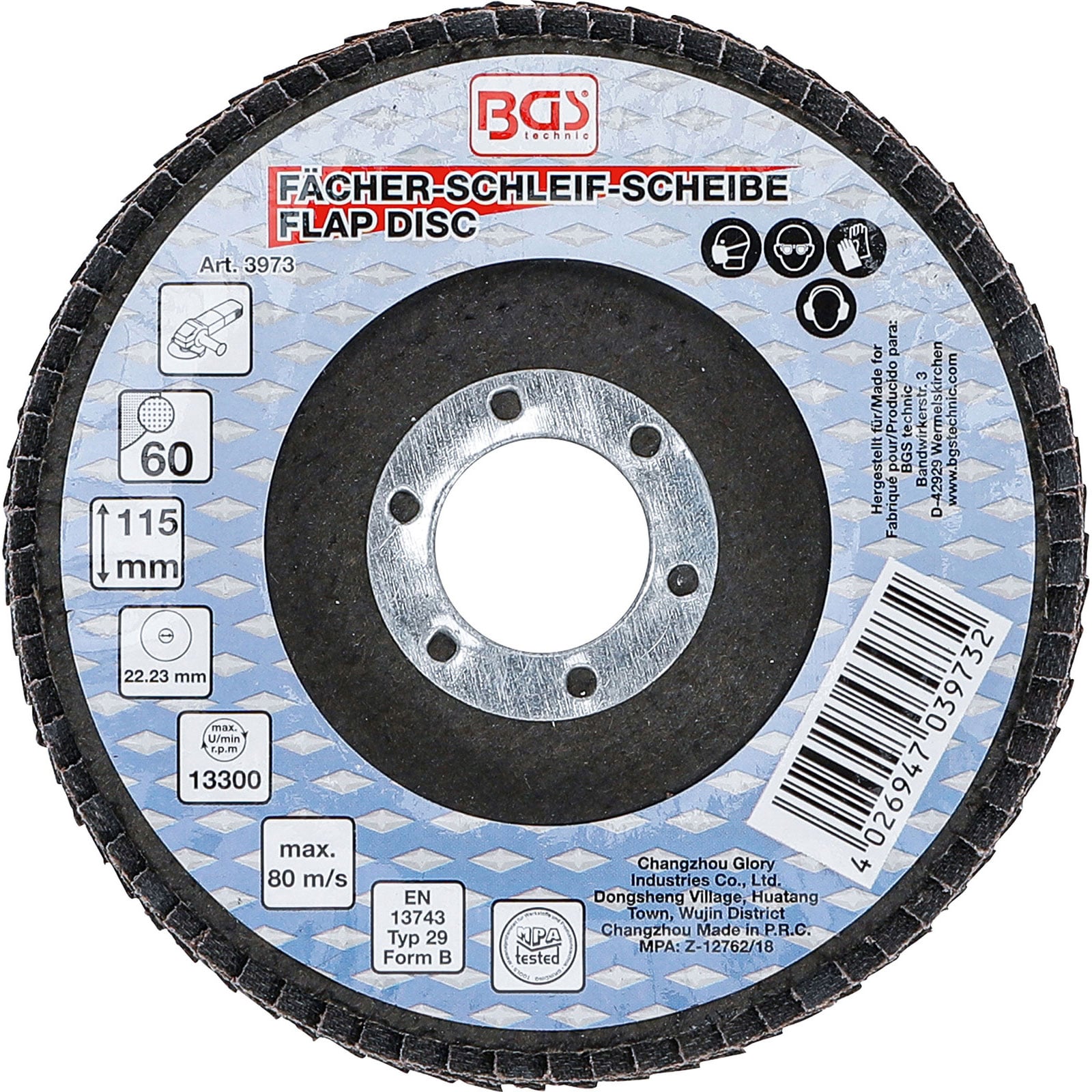 - 1x BGS Fächer-Schleif-Scheibe Ø 115 mm K 60