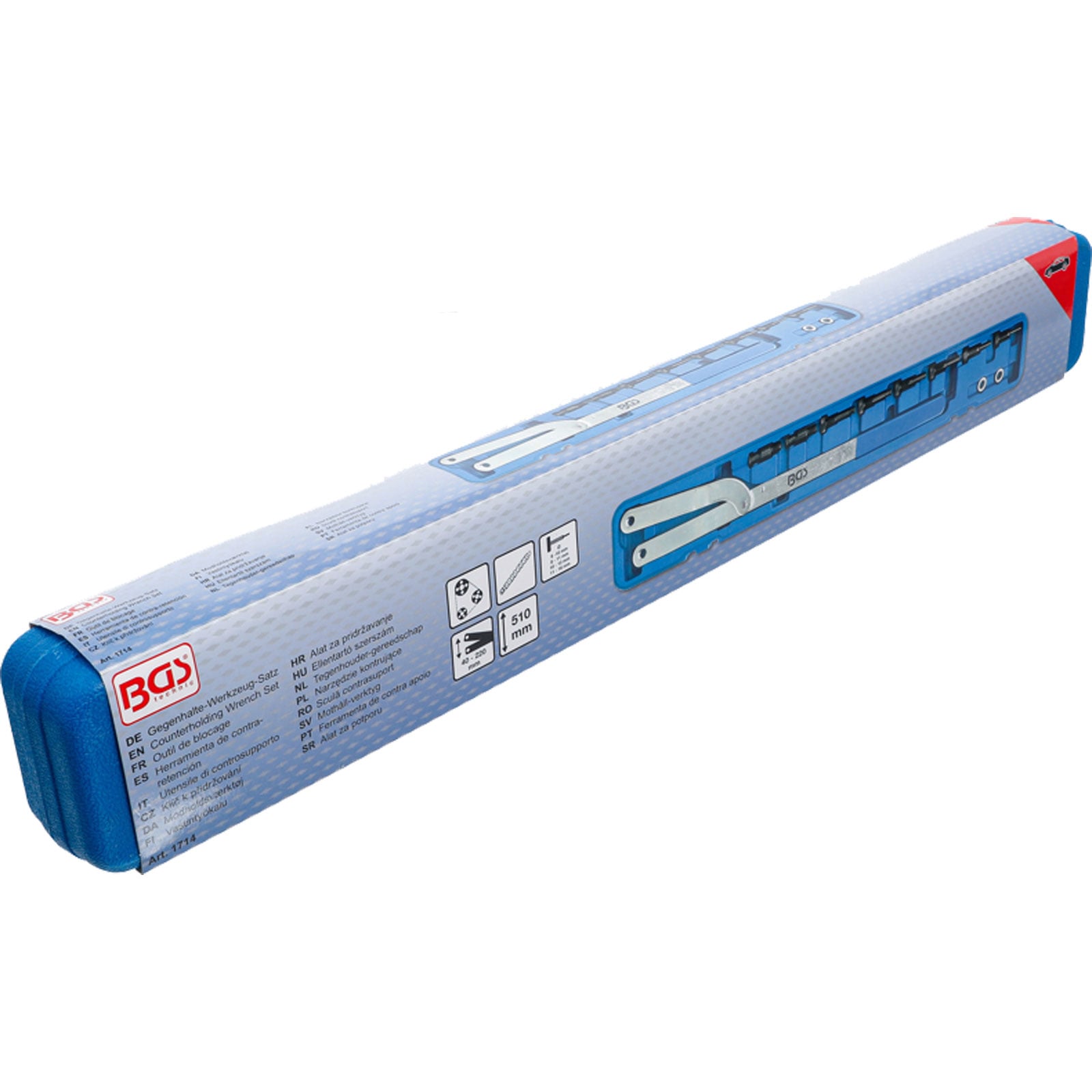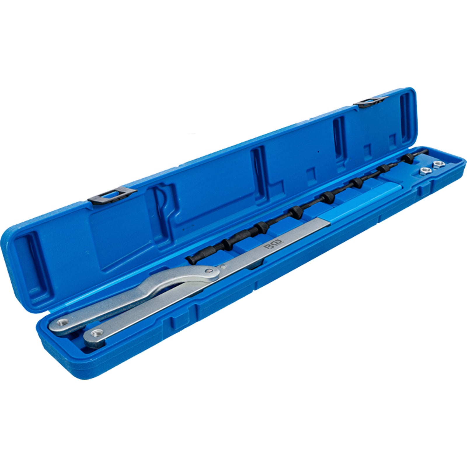 - 1x BGS Gegenhalte-Werkzeug mit austauschbaren Stiften (je 1 Paar austauschbare Haltezapfen, Ø 6 -10 mm, 8 - 11 mm, 10 - 12 mm, 11 - 16 mm)