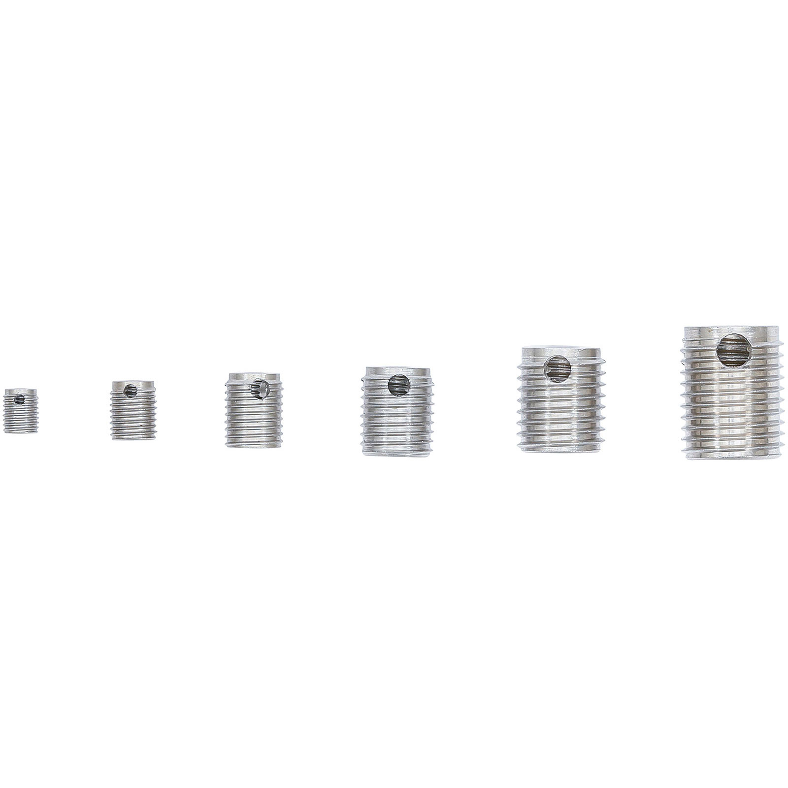 - 6 Gewindeeinsätze, Innengewinde M5 x 0,8, Außengewinde M8 x 1,0, Länge: 10 mm