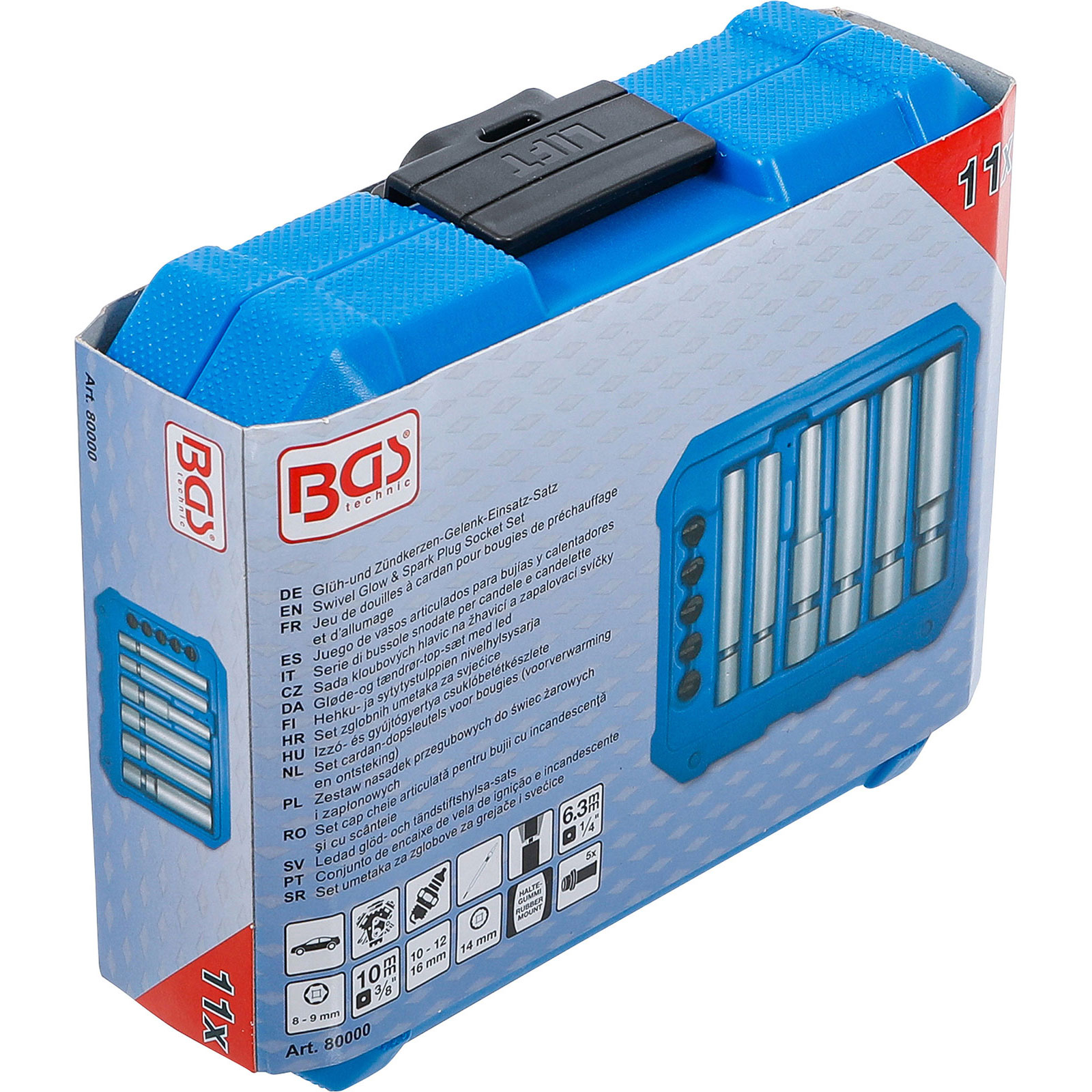 "BGS Glüh- und Zündkerzen-Gelenk-Einsatz-Satz Antrieb Innenvierkant 6,3 mm (1/4") / 10 mm (3/8") SW 8 - 9 - 10 - 12 - 14 - 16 mm 11tlg. - 80000"