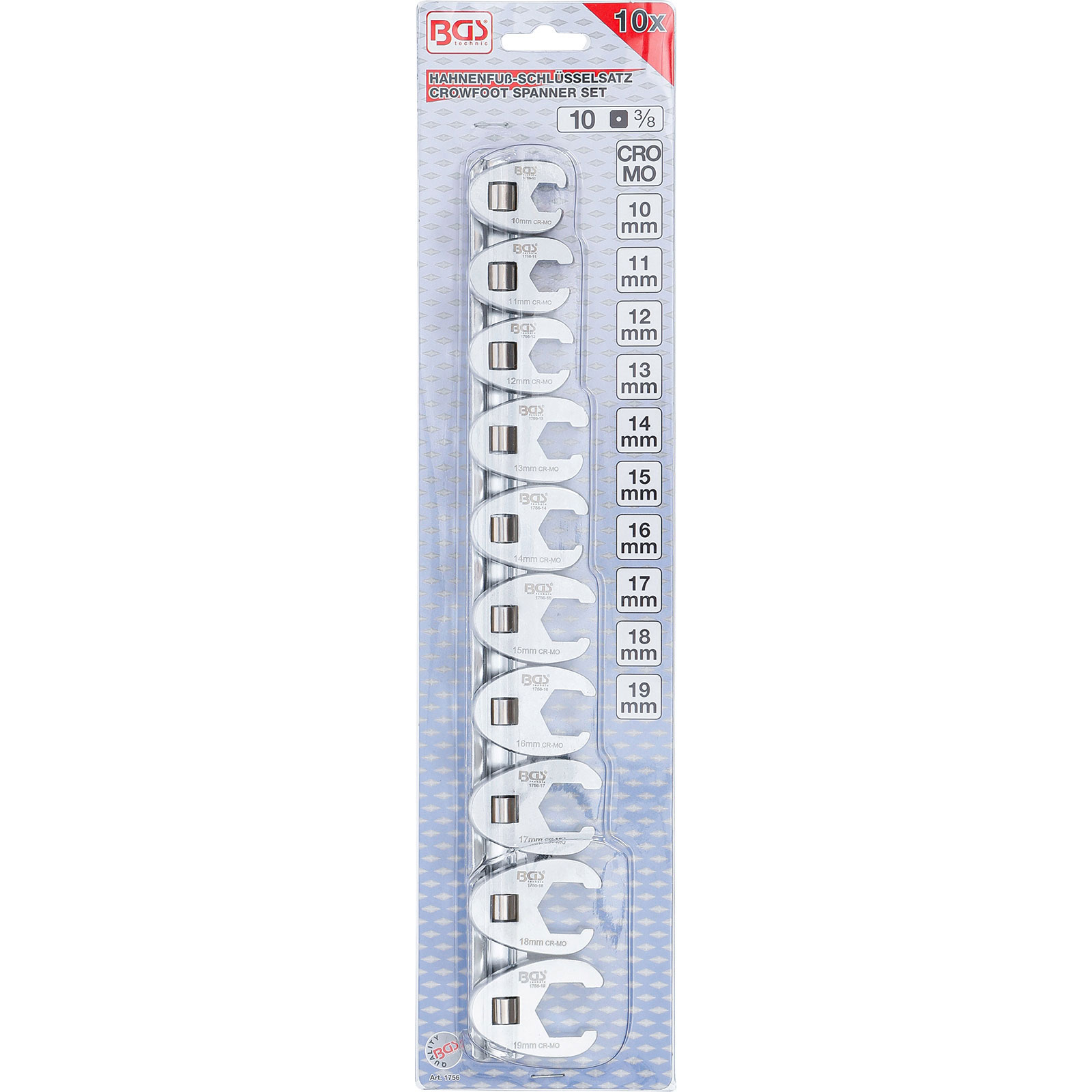 "BGS Hahnenfußschlüssel-Satz Antrieb Innenvierkant 10 mm (3/8") SW 10 - 19 mm 10tlg. - 1756"