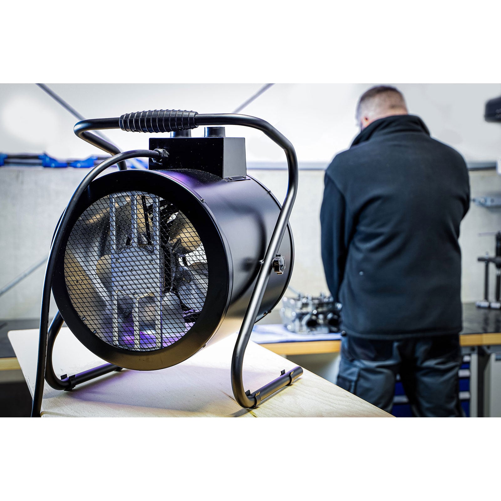 - tragbare Wärmequelle zum Beheizen von Räumen wie Werkstätten, Garagen, Baustellen, Haushalten und Geschäften