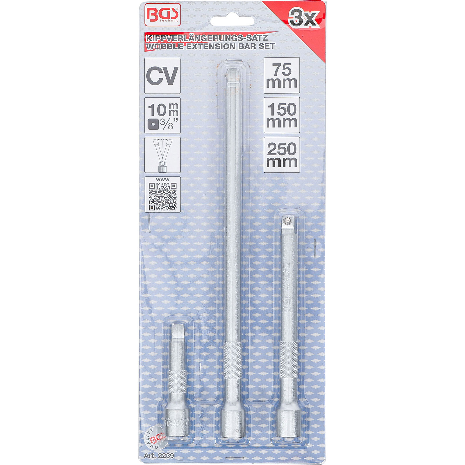 "BGS Kippverlängerungs-Satz 10 mm (3/8") 75 / 150 / 250 mm 3tlg. - 2239"