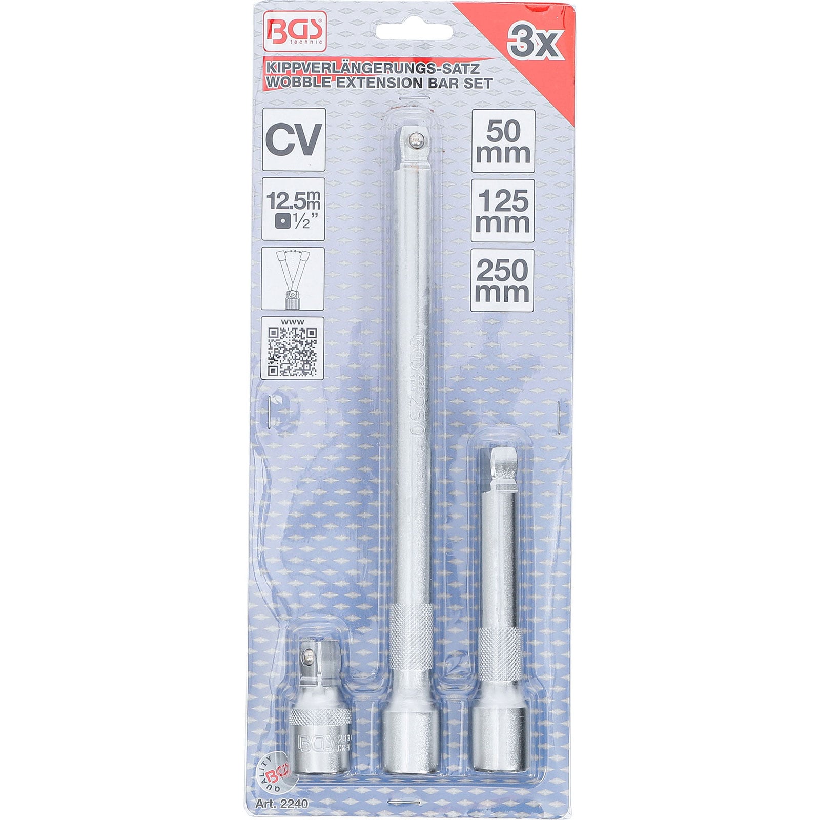 "BGS Kippverlängerungs-Satz 12,5 mm (1/2") 50 / 125 / 250 mm 3tlg. - 2240"