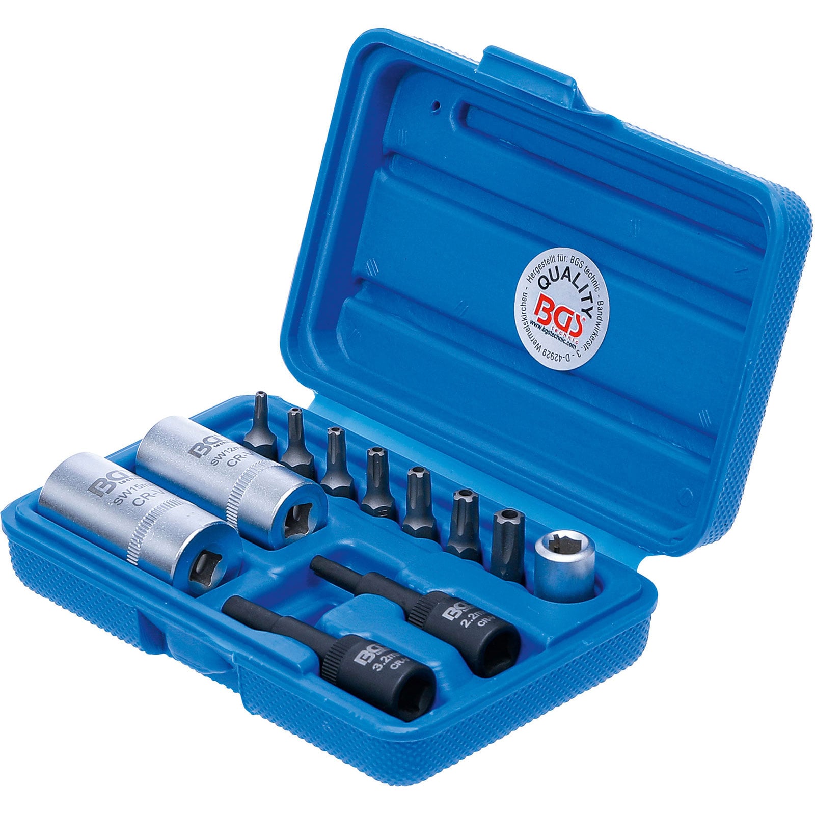 - je 1x BGS Spezial-Einsatz 8-kant 12 und 15 mm, 6,3 mm (1/4") Antrieb