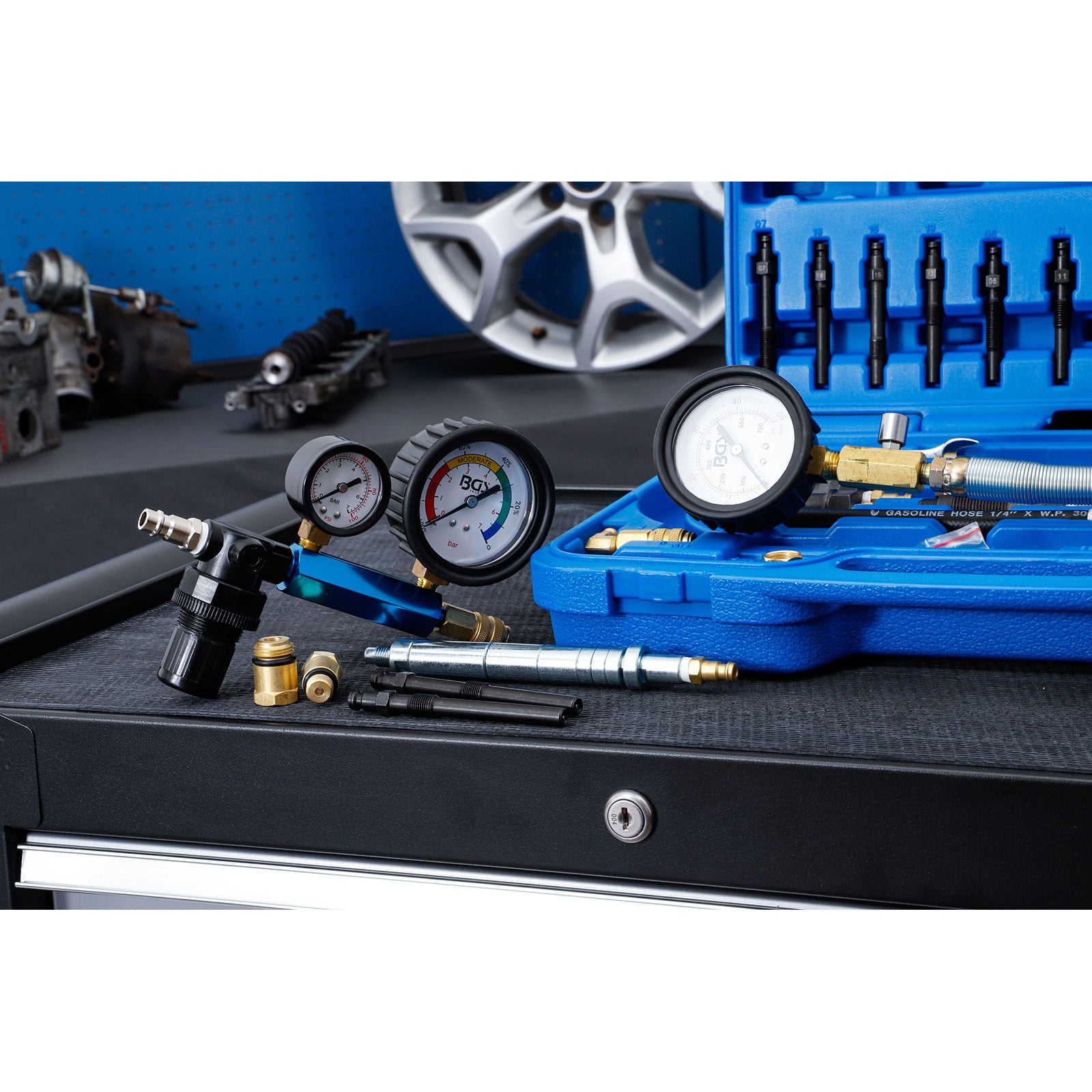 - 1x BGS Kompressions- und Druckverlust-Test-Satz für Benzin- und Dieselmotoren bestehend aus: