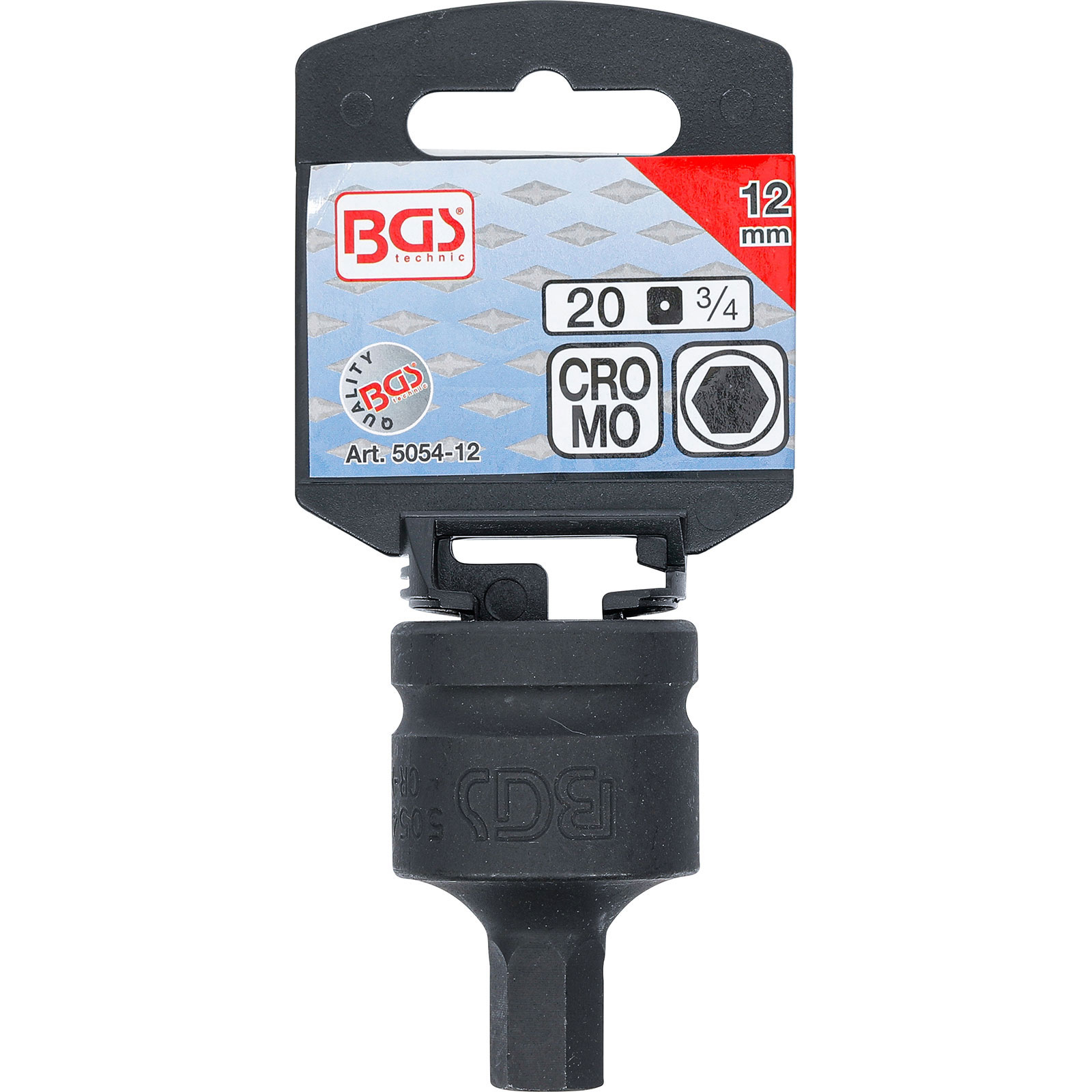 "BGS Kraft-Bit-Einsatz Antrieb Innenvierkant 20 mm (3/4") Innensechskant 12 mm - 5054-12"
