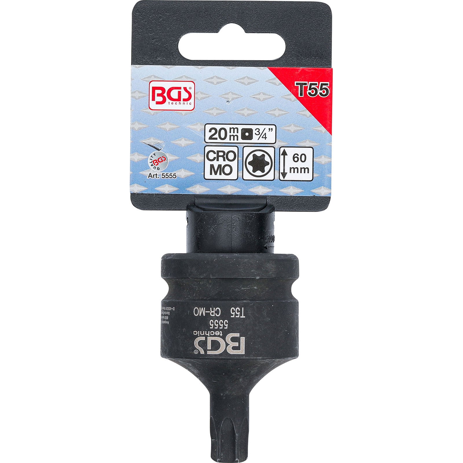 "BGS Kraft-Bit-Einsatz Antrieb Innenvierkant 20 mm (3/4") T-Profil (für Torx) T55 - 5555"