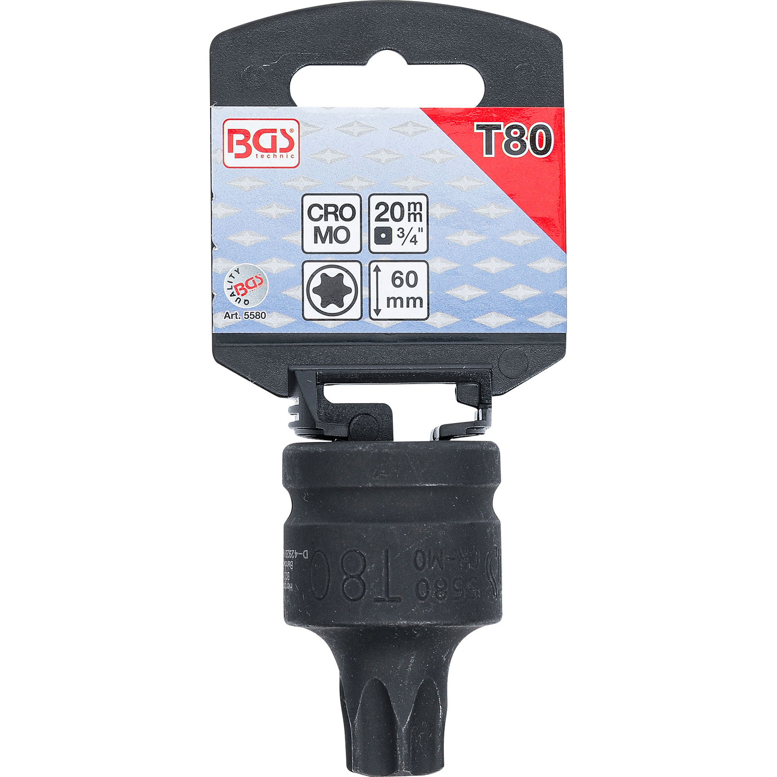 "BGS Kraft-Bit-Einsatz Antrieb Innenvierkant 20 mm (3/4") T-Profil (für Torx) T80 - 5580"