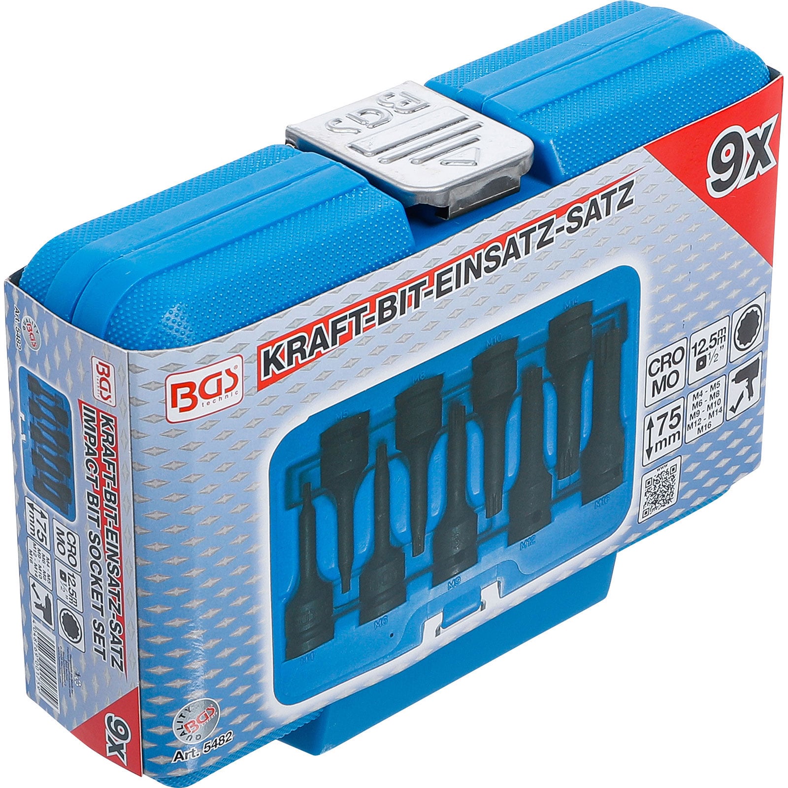 "BGS Kraft-Bit-Einsatz-Satz Antrieb Innenvierkant 12,5 mm (1/2") Innenvielzahn (für XZN) M4 - M16 9tlg. - 5482"