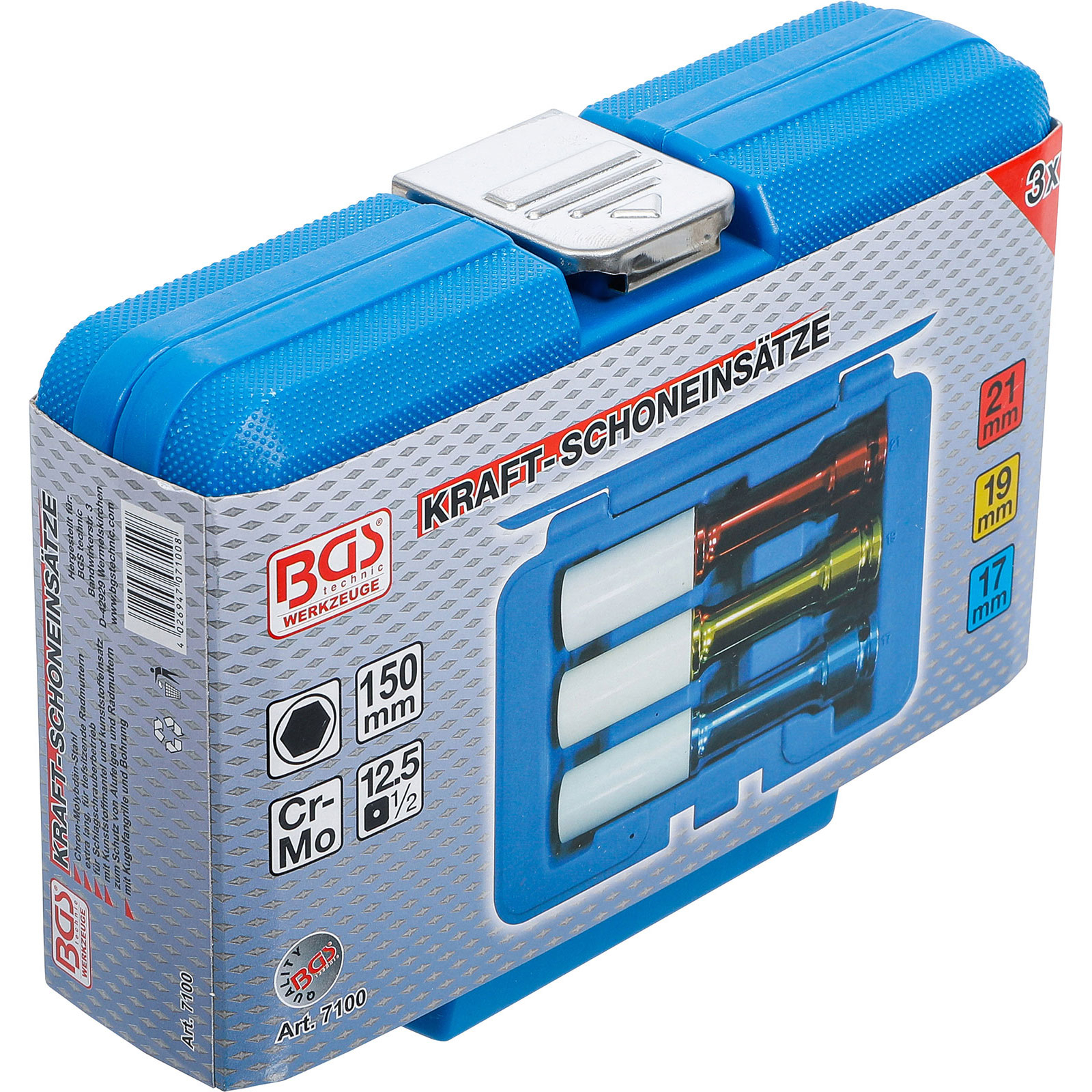"BGS Kraft-Schoneinsatz-Satz Antrieb Innenvierkant 12,5 mm (1/2") 150 mm tief SW 17 / 19 / 21 mm 3tlg. - 7100"