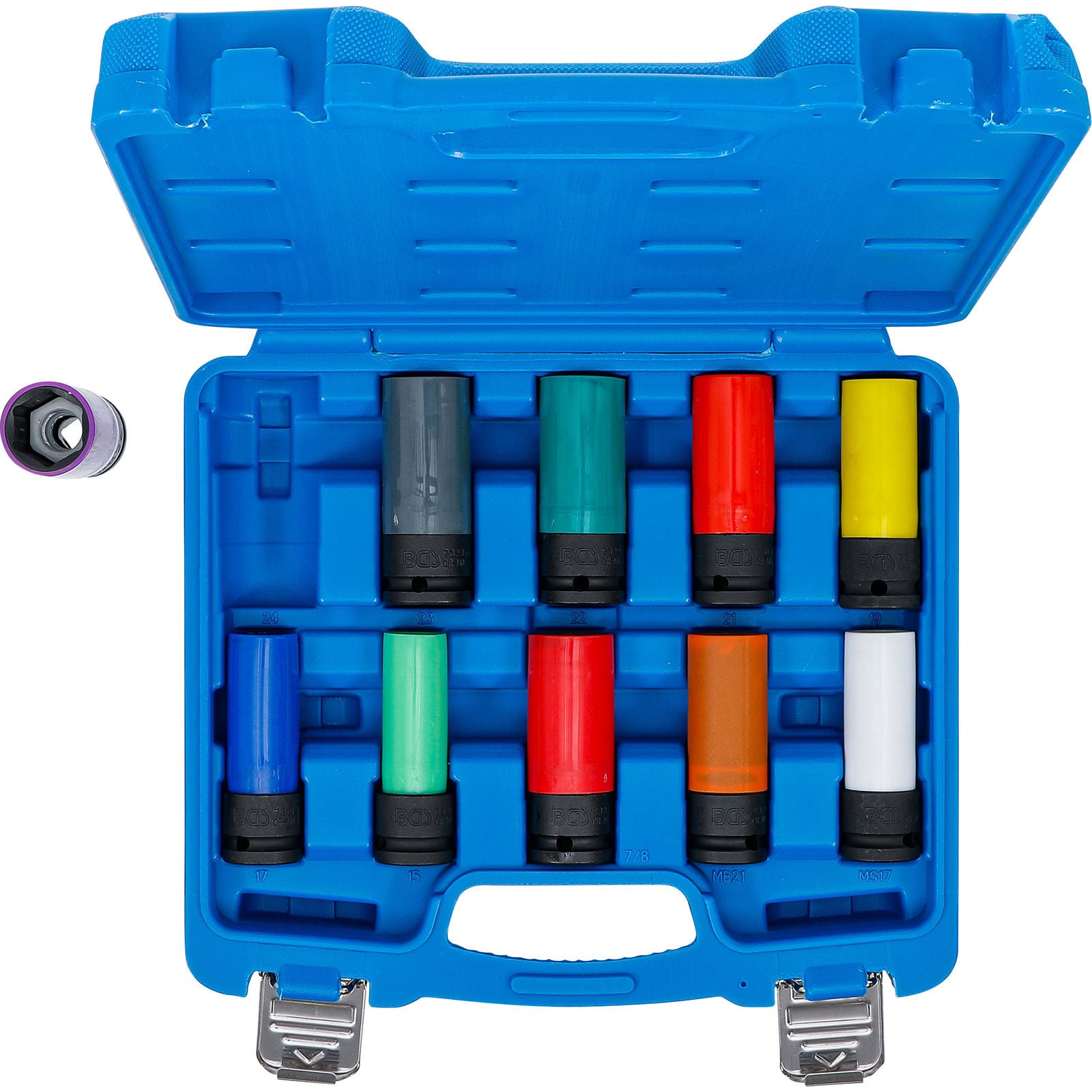 "BGS Kraft-Schoneinsatz-Satz Antrieb Innenvierkant 12,5 mm (1/2") SW 15 - 24 mm und Spezial-Radschrauben 10tlg. - 7311"