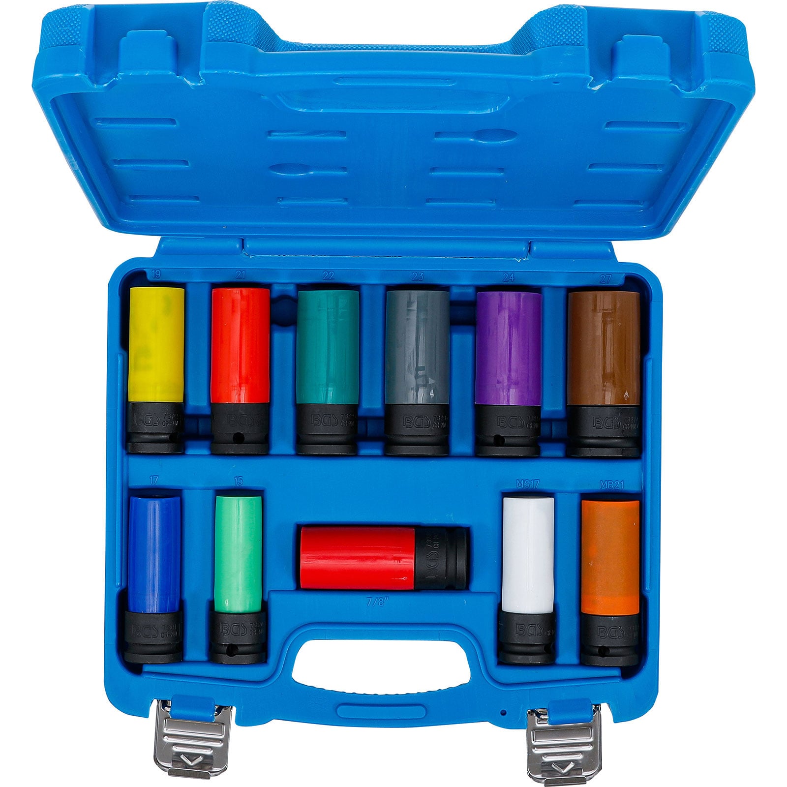 "BGS Kraft-Schoneinsatz-Satz Antrieb Innenvierkant 12,5 mm (1/2") SW 15 - 27 mm und Spezial-Radschrauben 11tlg. - 74254"