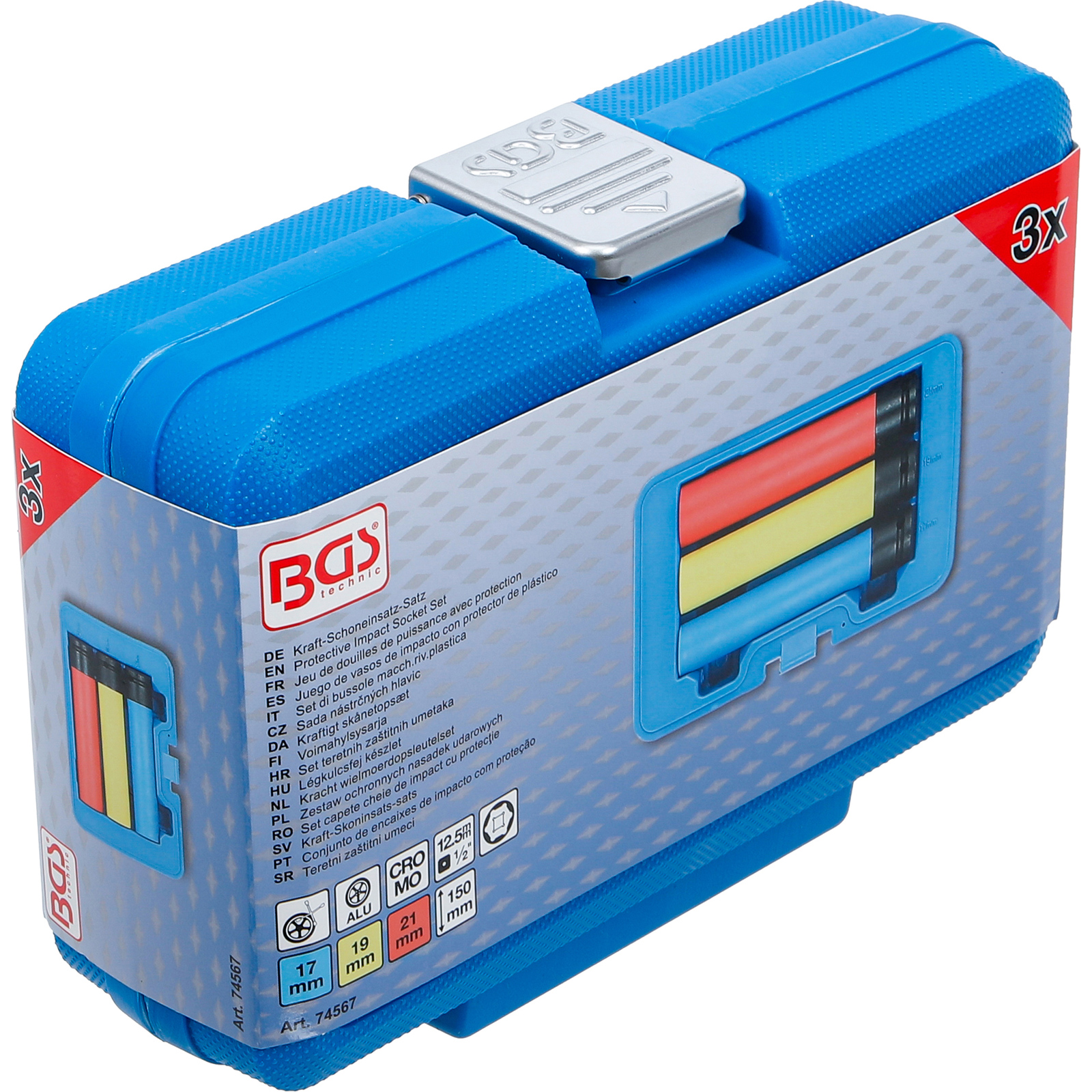 "BGS Kraft-Schoneinsatz-Satz | extra tief | Antrieb Innenvierkant 12,5 mm (1/2") | SW 17 / 19 / 21 mm | 3-tlg. - 74567"
