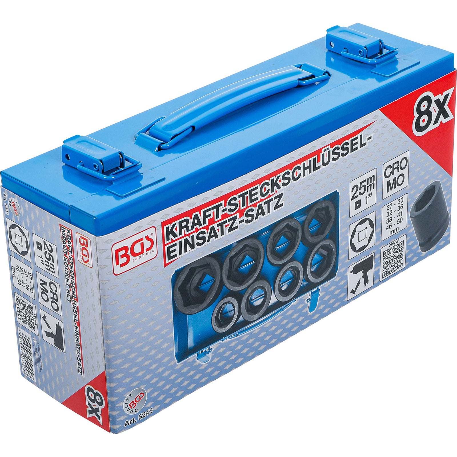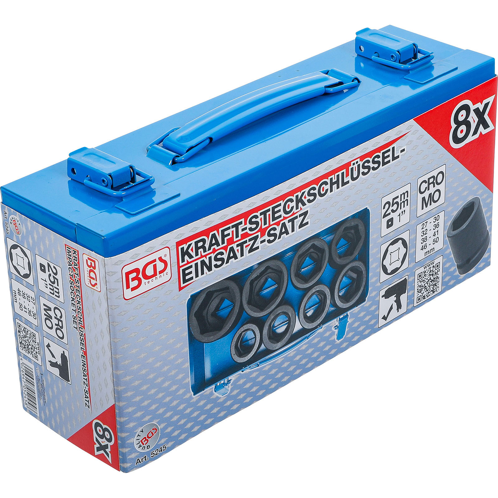 "BGS Kraft-Steckschlüssel-Einsatz-Satz Sechskant Antrieb Innenvierkant 25 mm (1") SW 27 - 50 mm 8tlg. - 5245"