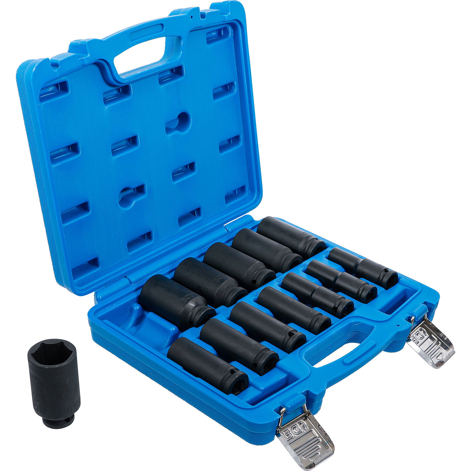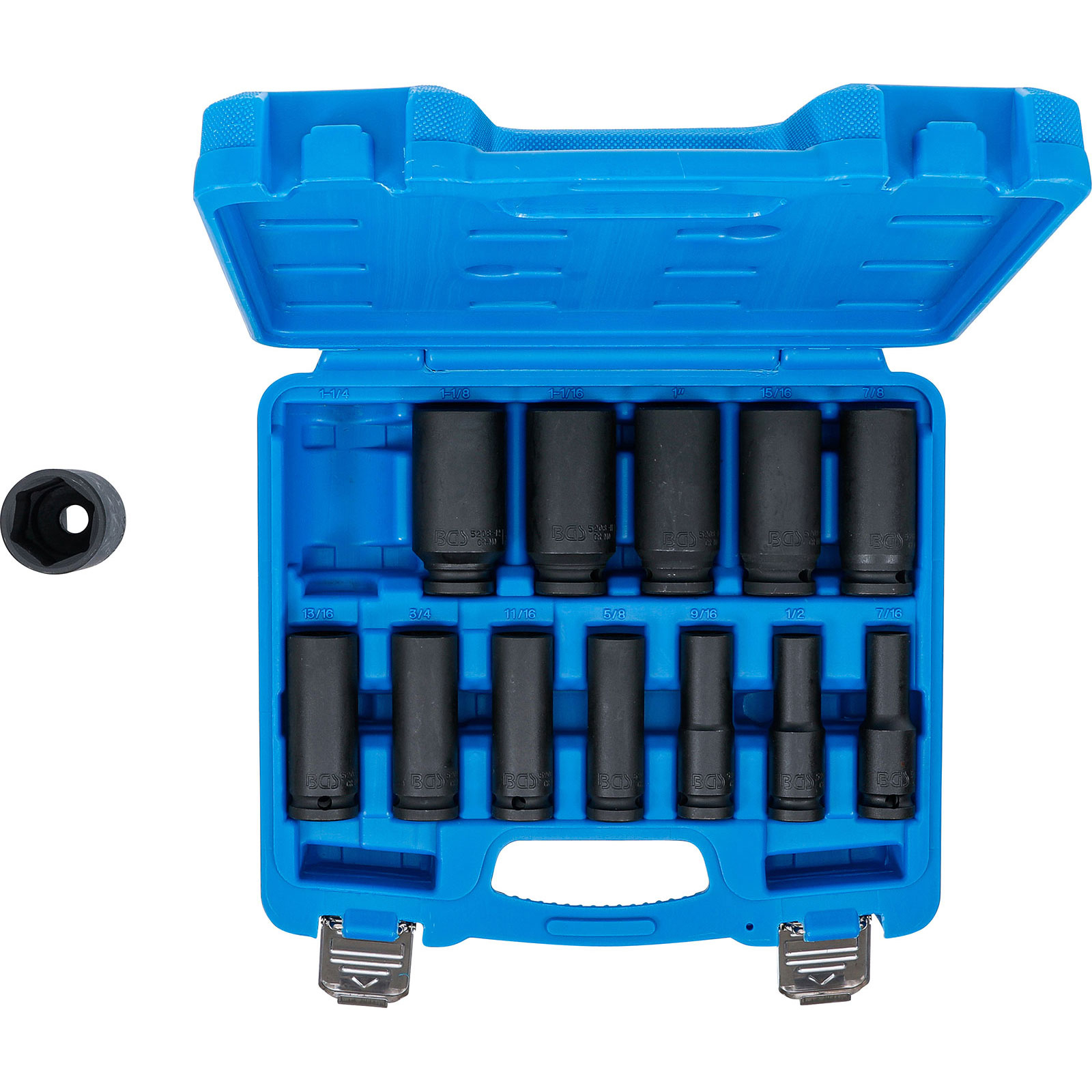 - 1x BGS Kraft-Steckschlüssel-Einsatz-Satz Sechskant tief Antrieb Innenvierkant 12,5 mm (1/2") Zollgrößen 13tlg.