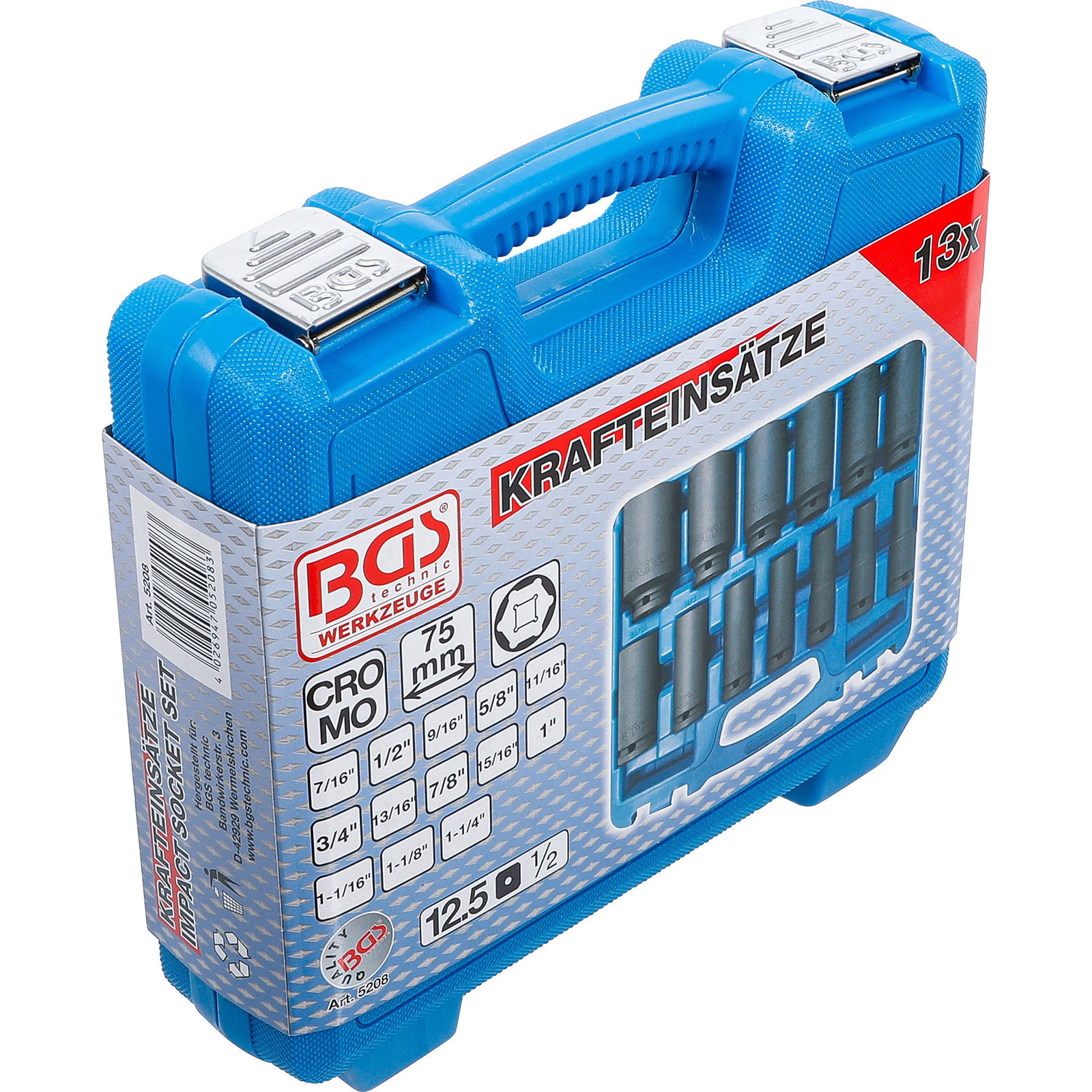 "BGS Kraft-Steckschlüssel-Einsatz-Satz Sechskant tief Antrieb Innenvierkant 12,5 mm (1/2") Zollgrößen 13tlg. - 5208"