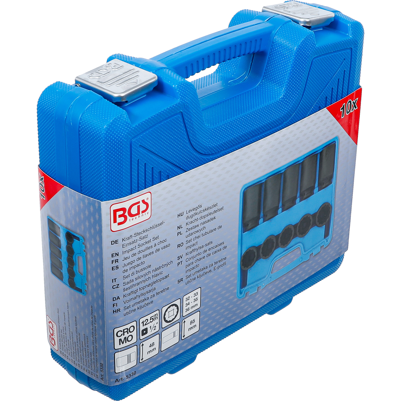 "BGS Kraft-Steckschlüssel-Einsatz-Satz | Zwölfkant | Antrieb Innenvierkant 12,5 mm (1/2") | SW 32 - 36 mm | 10-tlg. - 5330"