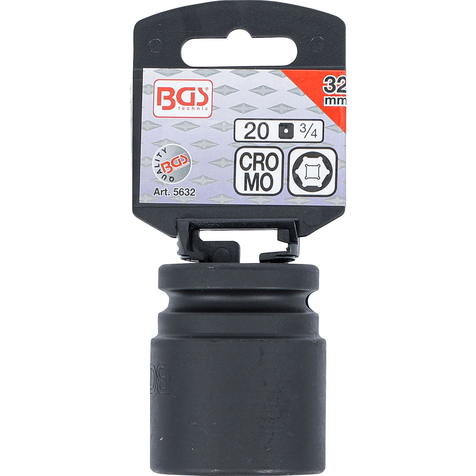 - 1x BGS Kraft-Steckschlüssel-Einsatz Sechskant Antrieb Innenvierkant 20 mm (3/4") SW 32 mm