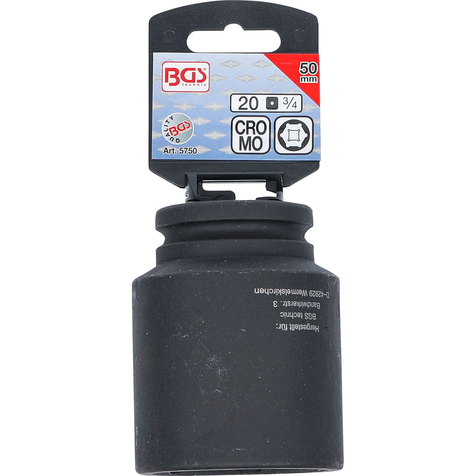 - 1x BGS Kraft-Steckschlüssel-Einsatz Sechskant tief Antrieb Innenvierkant 20 mm (3/4") SW 50 mm