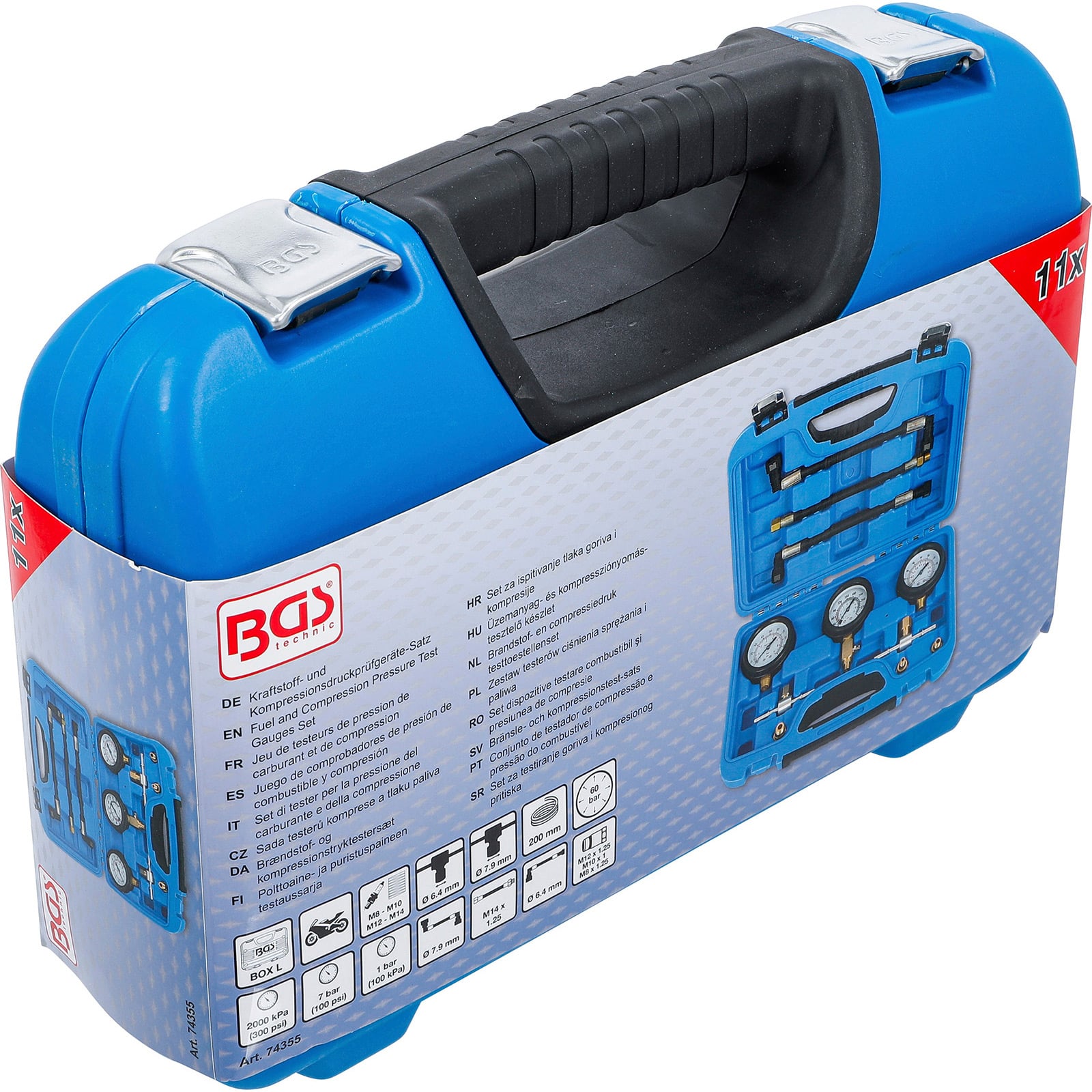 - 1x BGS Kraftstoff- und Kompressionsdruckprüfgeräte-Satz für Motorräder 11tlg.