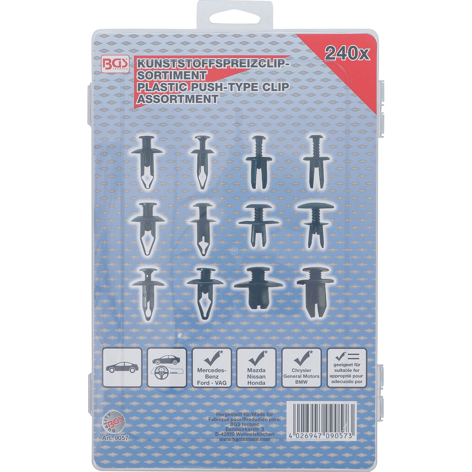 "BGS Kunststoffspreizclip-Sortiment für Mazda / Honda / Ford / Nissan / VW 240tlg. - 9057"