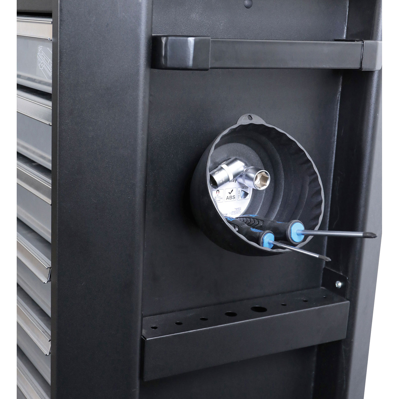 - besonders hohe Ausführung, dadurch können sowohl nicht-magnetische Kleinteile aus Aluminium, Messing oder rostfreiem Stahl, wie auch größere Metall-Werkzeuge problemlos aufgenommen werden.
