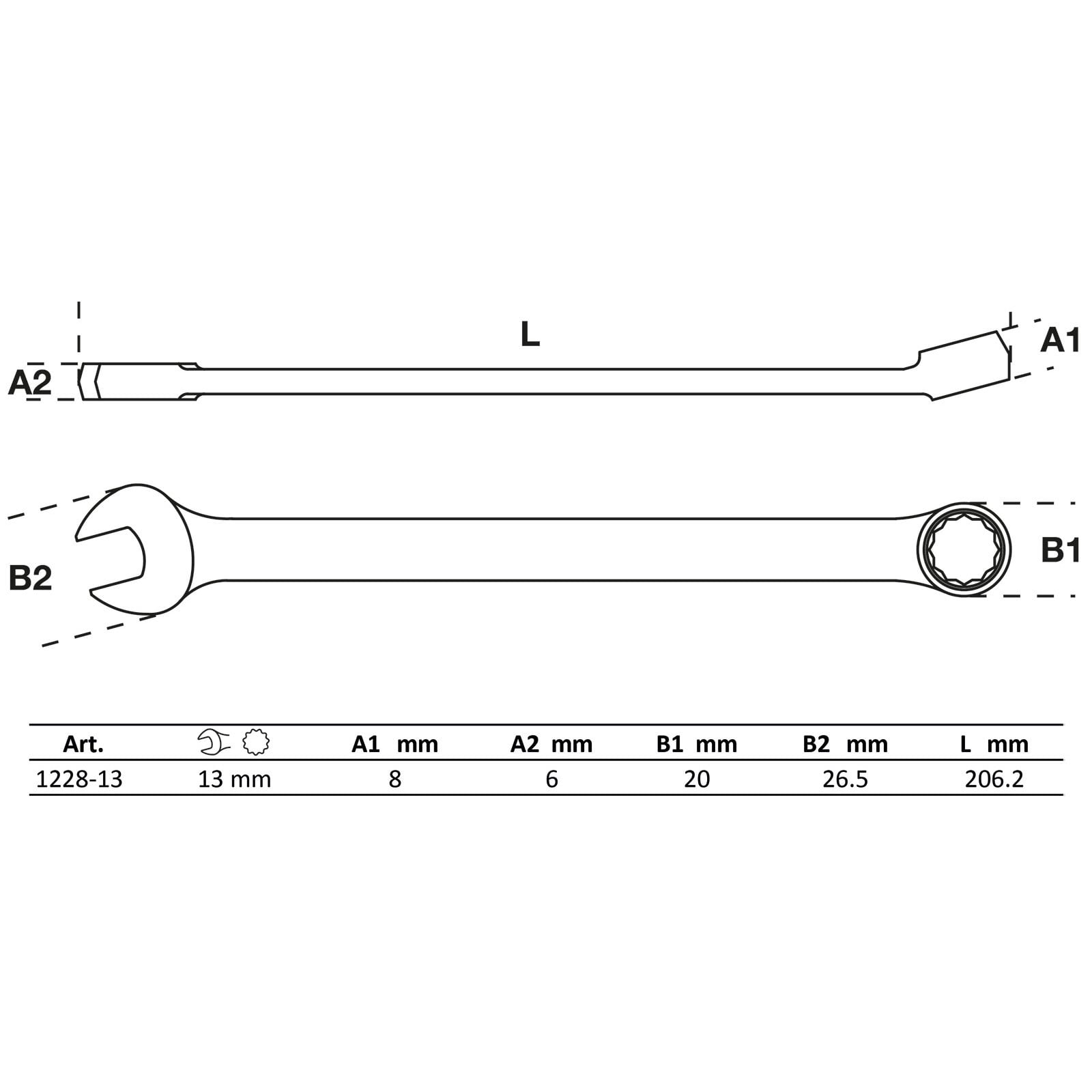 Schlüsselweite 2: 13 mmLänge: 205 mmMaterial: Chrom-Vanadium-StahlSchlüsselweite 1: 13 mmBruttogewicht: 90 gAnmelden
