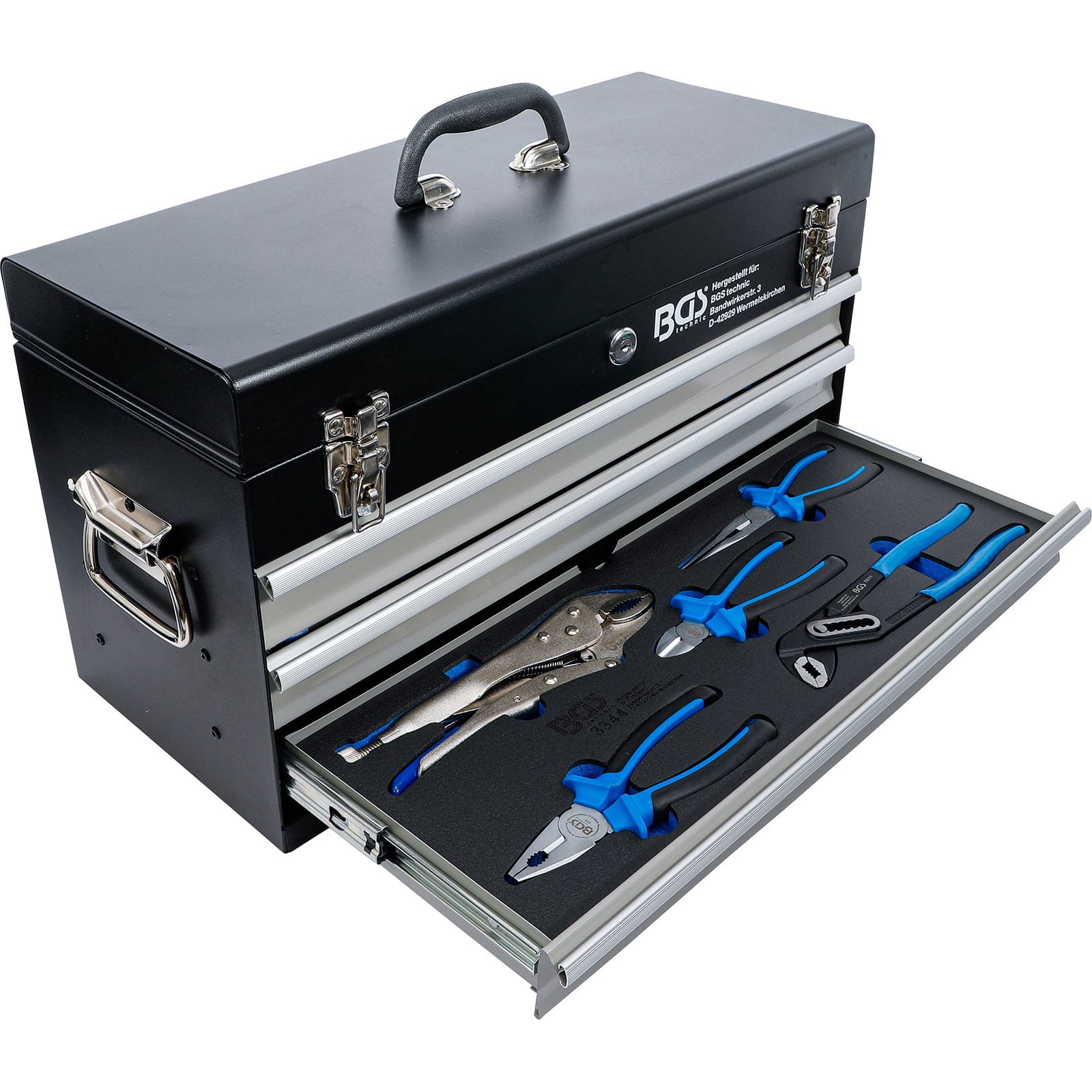 - 1x BGS Metall-Werkzeugkoffer 3 Schubladen mit 143 Werkzeugen