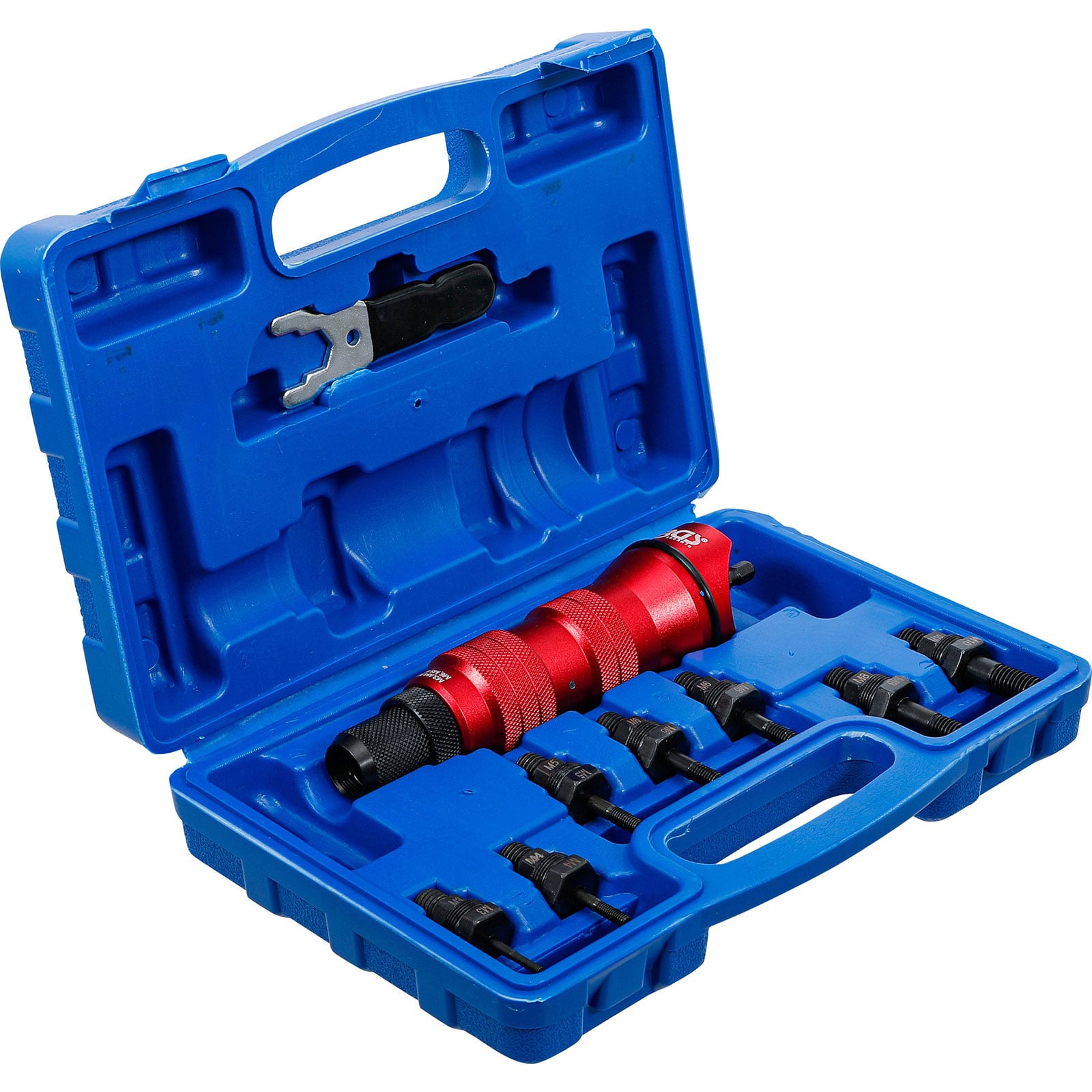 - austauschbare Nietmutternzugdorne in unterschiedlichen Größen