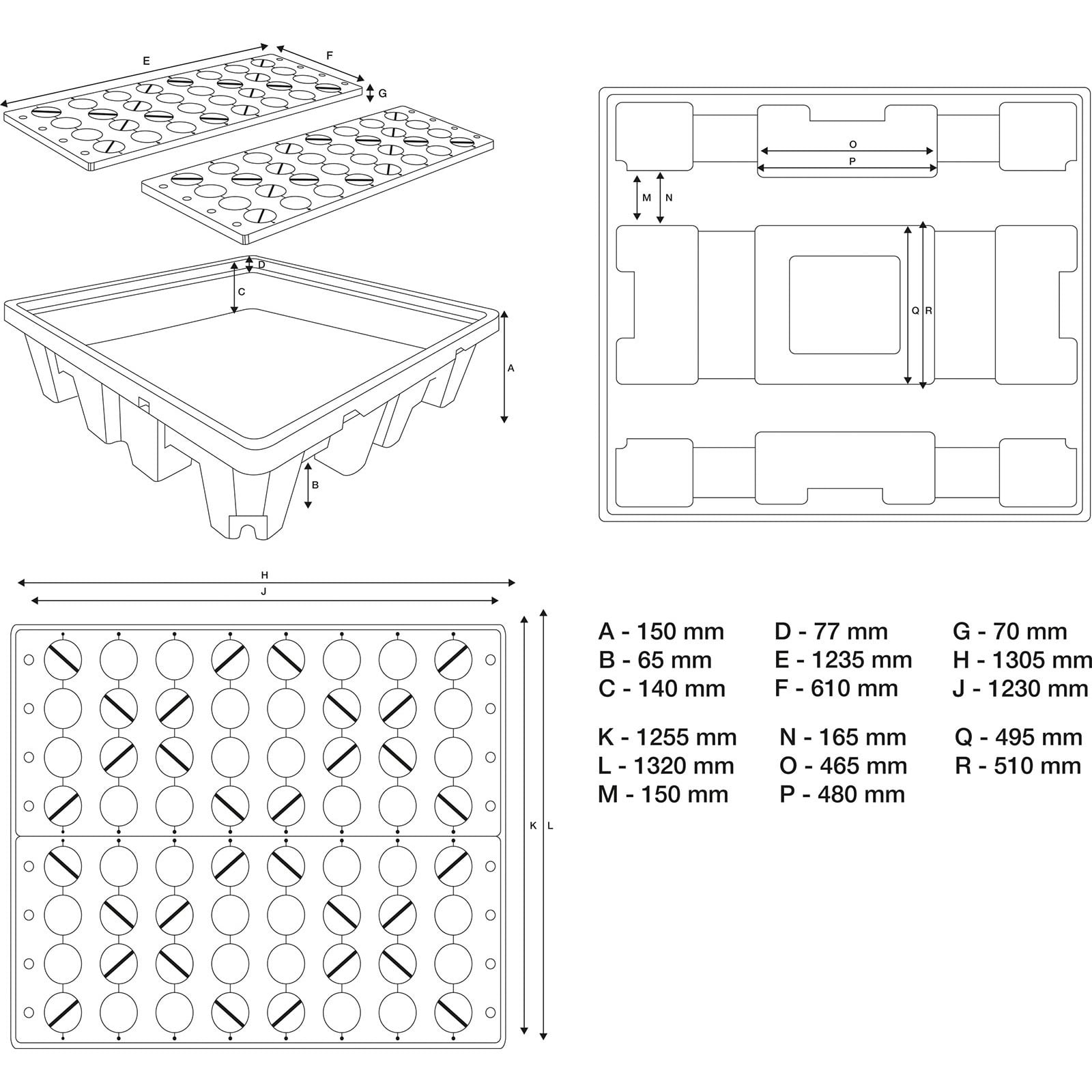 - Abmessungen Gitterrost: 1235 x 610 x 70 mm