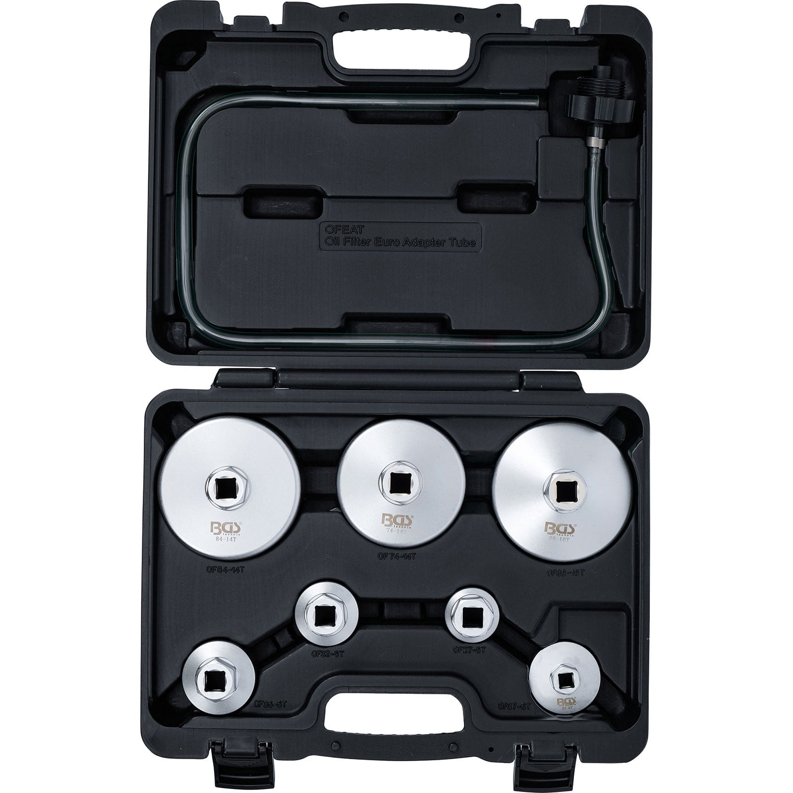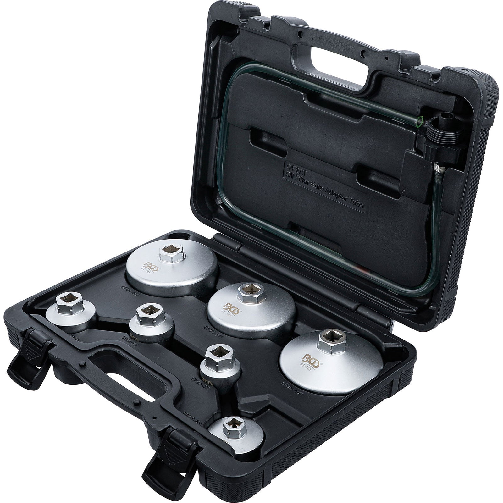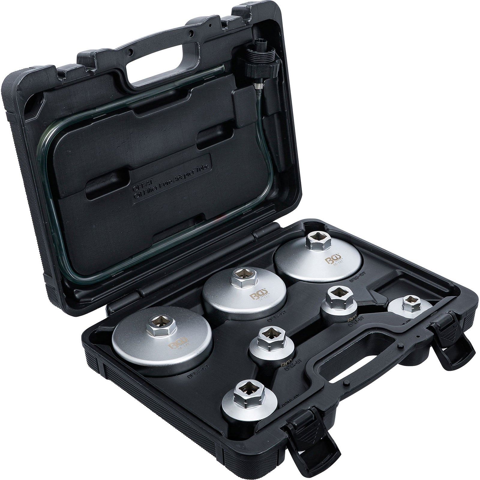 "BGS Ölfilterschlüssel-Satz mit Ölfilter-Ablassschlauch für VAG / BMW / Citroën / Peugeot / Ford / Mercedes-Benz / Opel / Volvo 8tlg. - 72054"