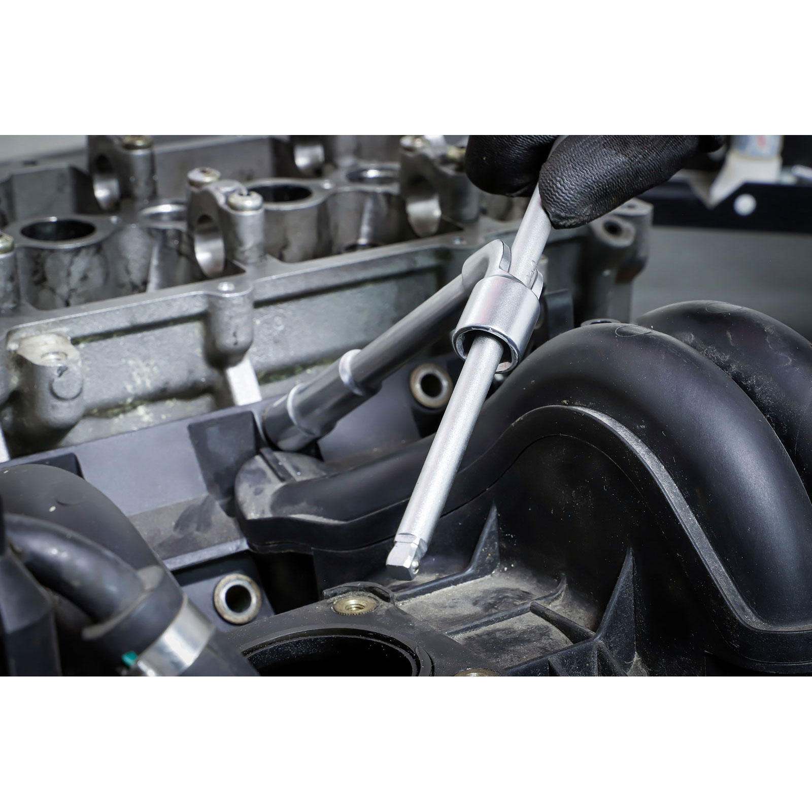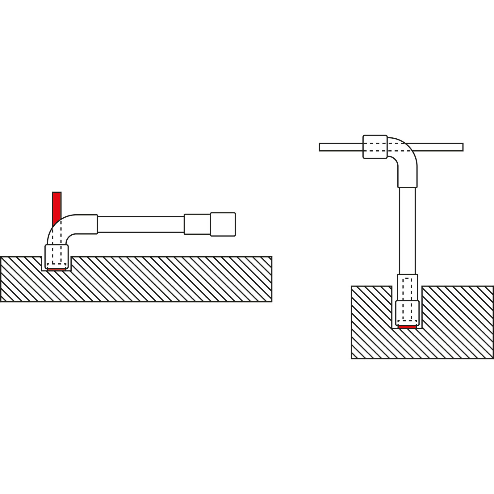 - besonders geeignet für Stehbolzen und tiefliegende Muttern auf Gewindestangen, wo ein normaler Ringschlüssel in gekröpfter Ausführung nicht verwendet werden kann