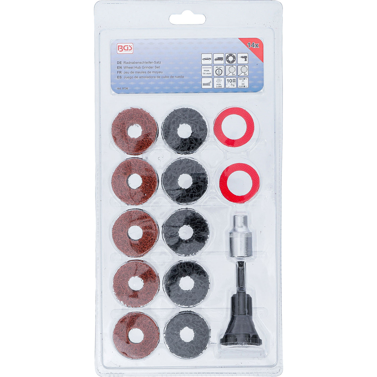 "BGS Radnabenschleifer-Satz für Stehbolzen und Radmutternbolzen 14tlg. - 9736"