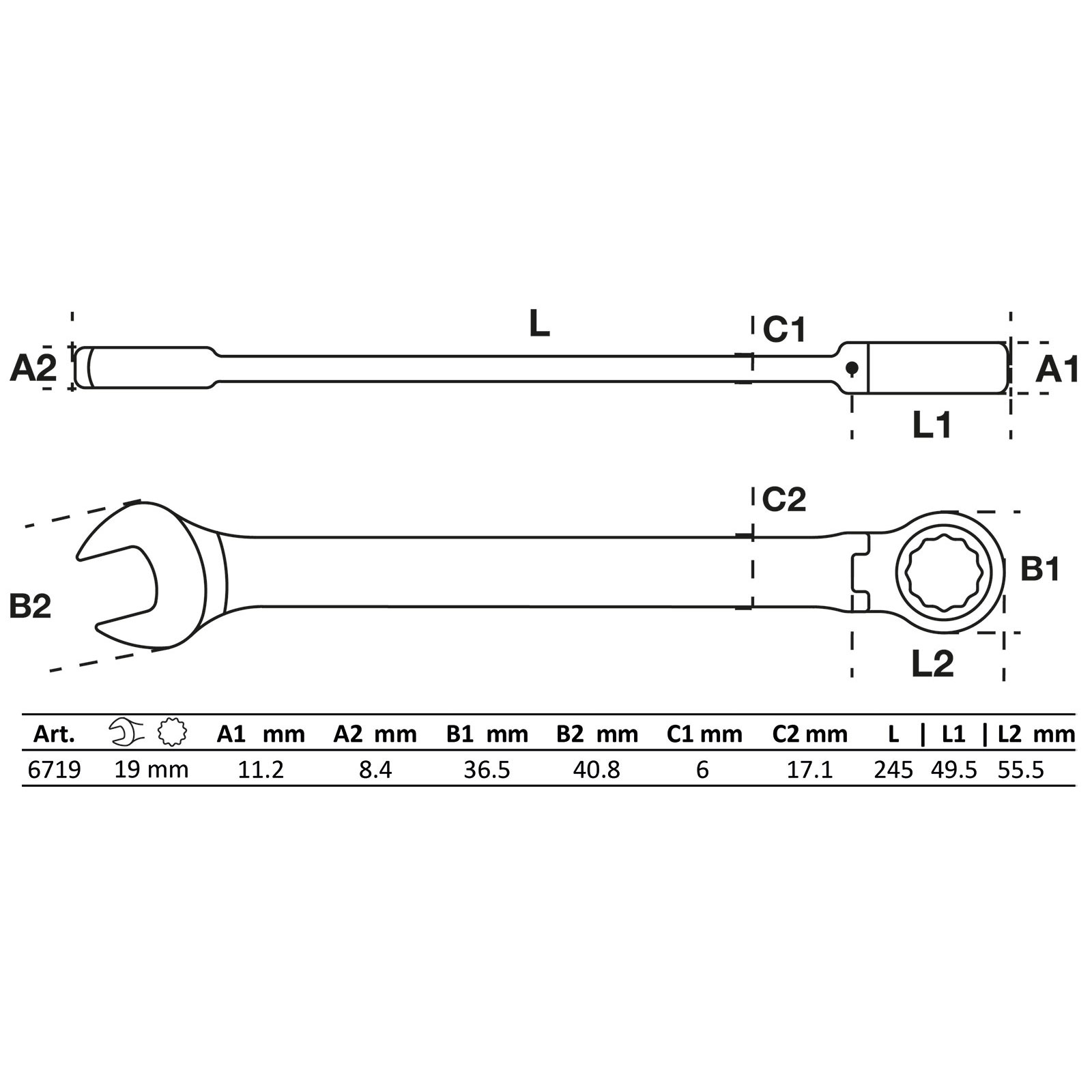 "BGS Ratschenring-Maulschlüssel abwinkelbar SW 19 mm - 6719"