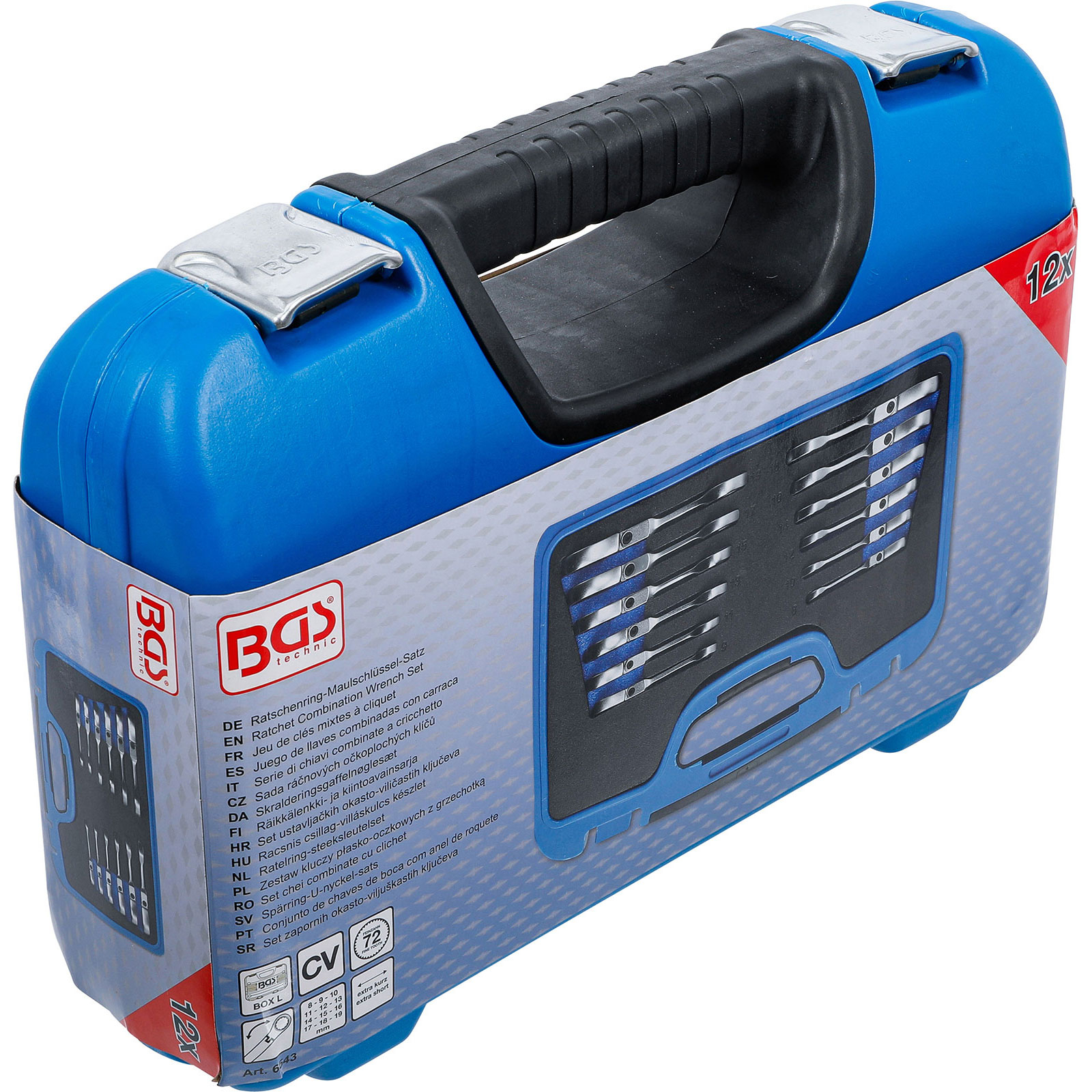 "BGS Ratschenring-Maulschlüssel-Satz kurz abwinkelbar SW 8 - 19 mm 12tlg. - 6543"