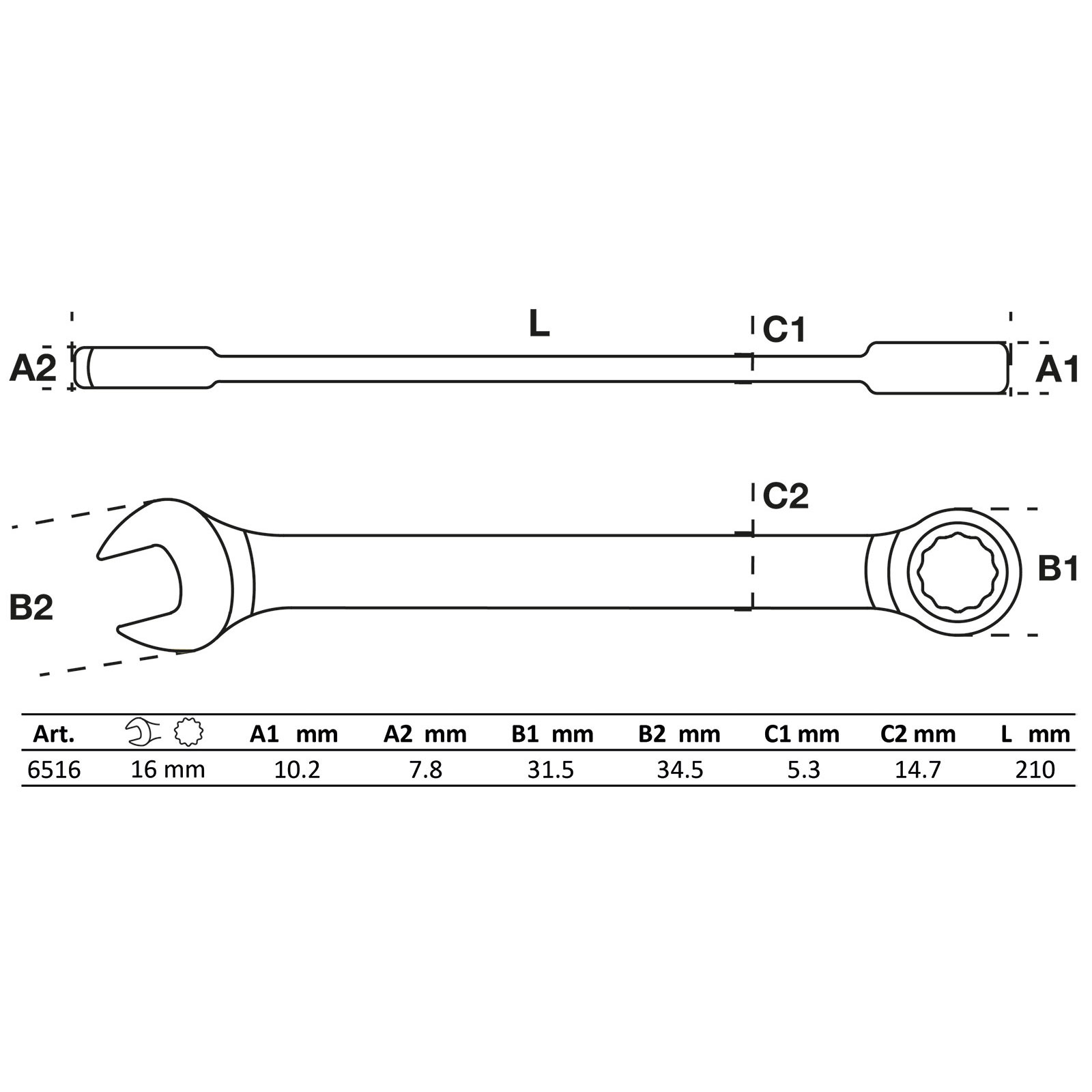 "BGS Ratschenring-Maulschlüssel SW 16 mm - 6516"