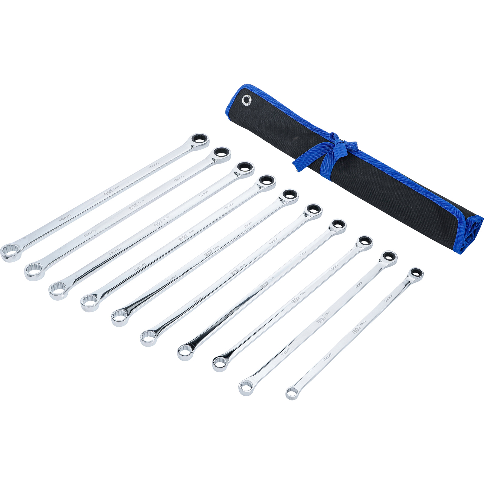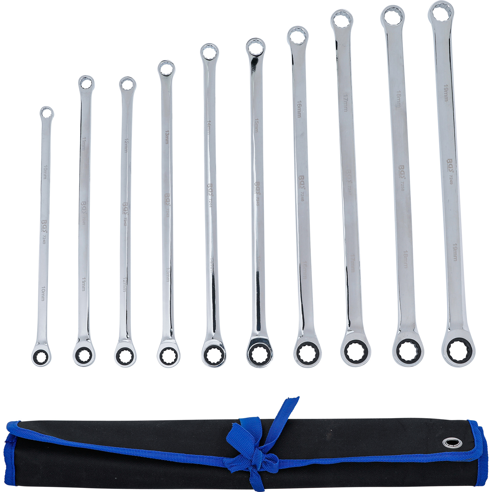 - 1x BGS Ratschenring- und Ringschlüssel-Satz | extra lang | SW 10 - 19 mm | 10-tlg.