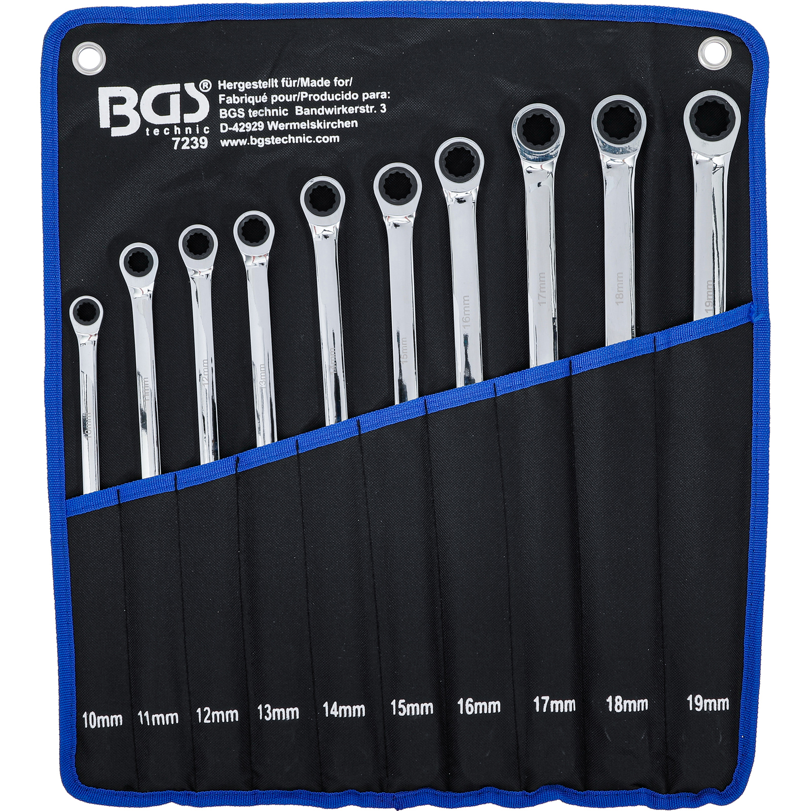 "BGS Ratschenring- und Ringschlüssel-Satz | extra lang | SW 10 - 19 mm | 10-tlg. - 7239"