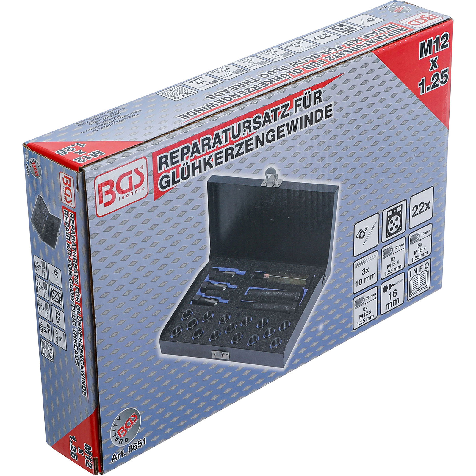 - 1x BGS Reparatursatz für Glühkerzengewinde M12 x 1,25